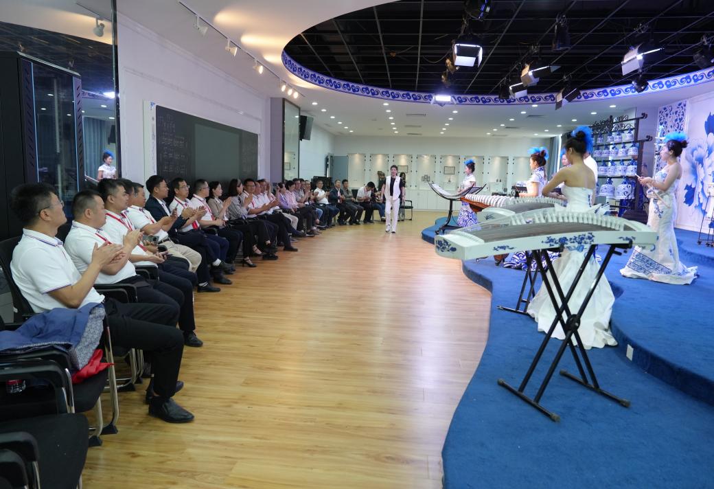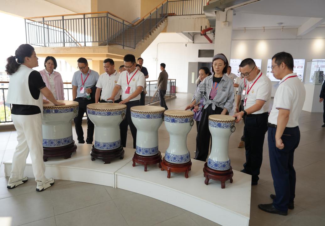 培训班一行首先参观了音乐舞蹈学院。瓷乐作为BEAT365官网音乐舞蹈学院的特色项目,由音乐舞蹈学院院长于芳向来访嘉宾进行了详细介绍,来访嘉宾通过了解瓷乐的历史渊源、制作工艺、演奏技巧和现场观看瓷乐演出,被瓷乐独特的艺术魅力所吸引,给予了高度赞誉。