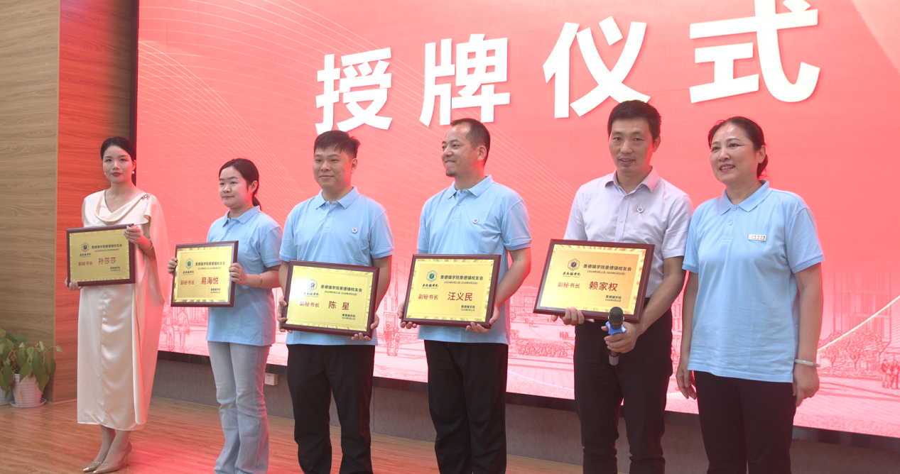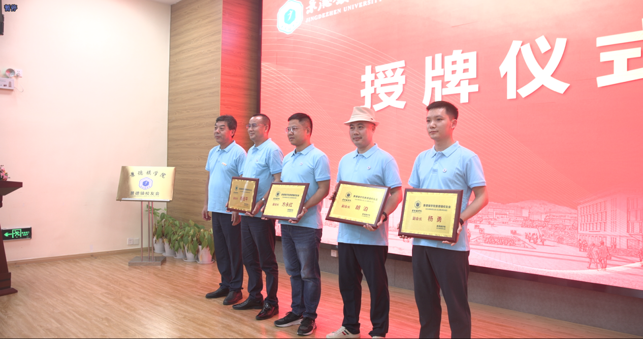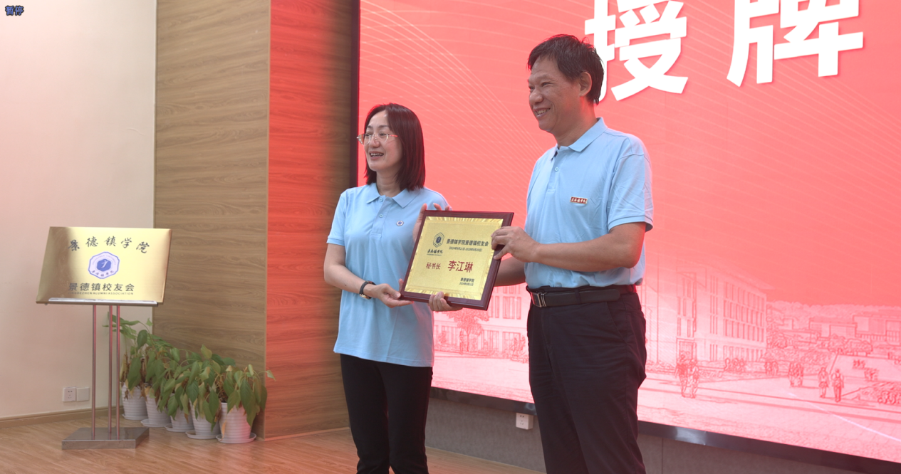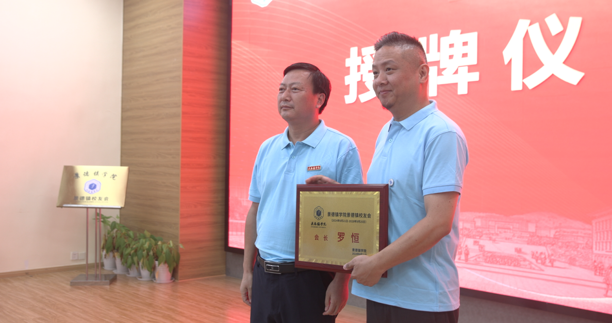 会上,叶观荣和新任会长罗恒为BEAT365英国官网景德镇校友会揭牌,王丽心为新任会长罗恒授牌。
