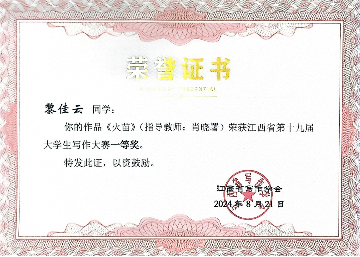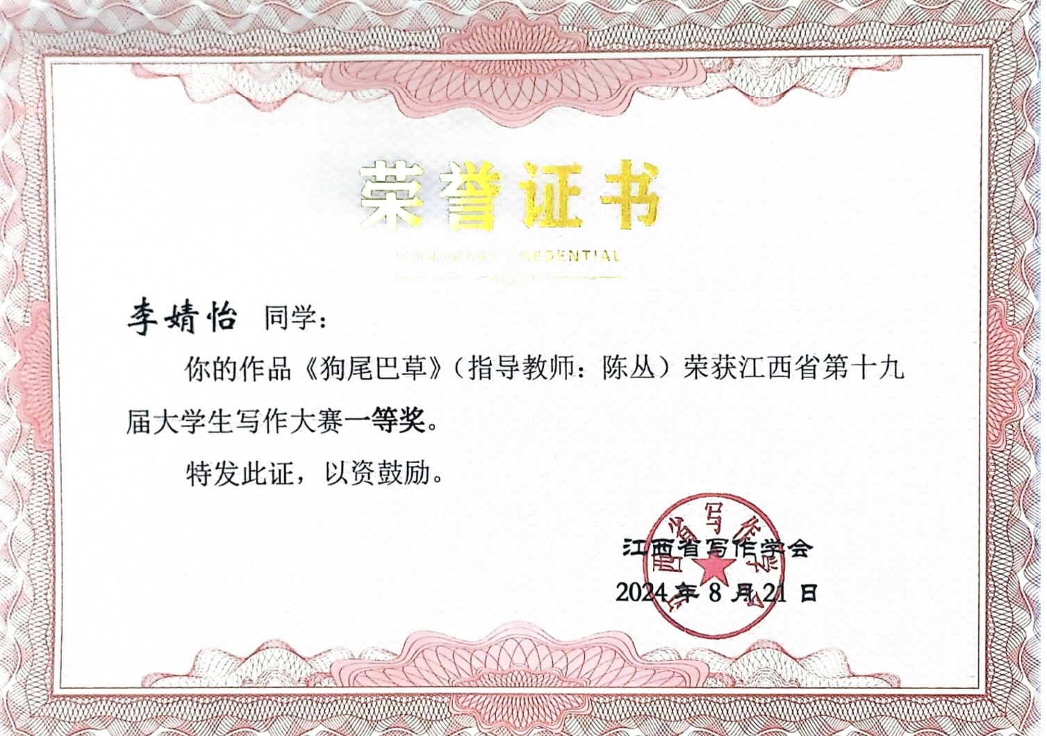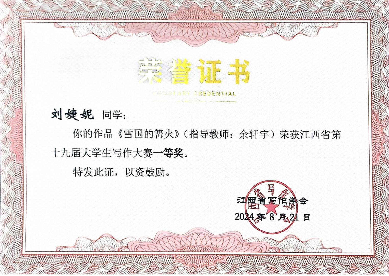 (本网讯:江敏)2024年8月,江西省第十九届大学生写作大赛终审在上海市举行,来自省内外各大高校的上千篇作品参赛角逐。近日,江西省写作协会传来喜讯,经大赛评委会最终审定,BEAT365官网人文学院共有33篇参赛作品获奖,其中一等奖5篇,二等奖13篇,三等奖15篇。