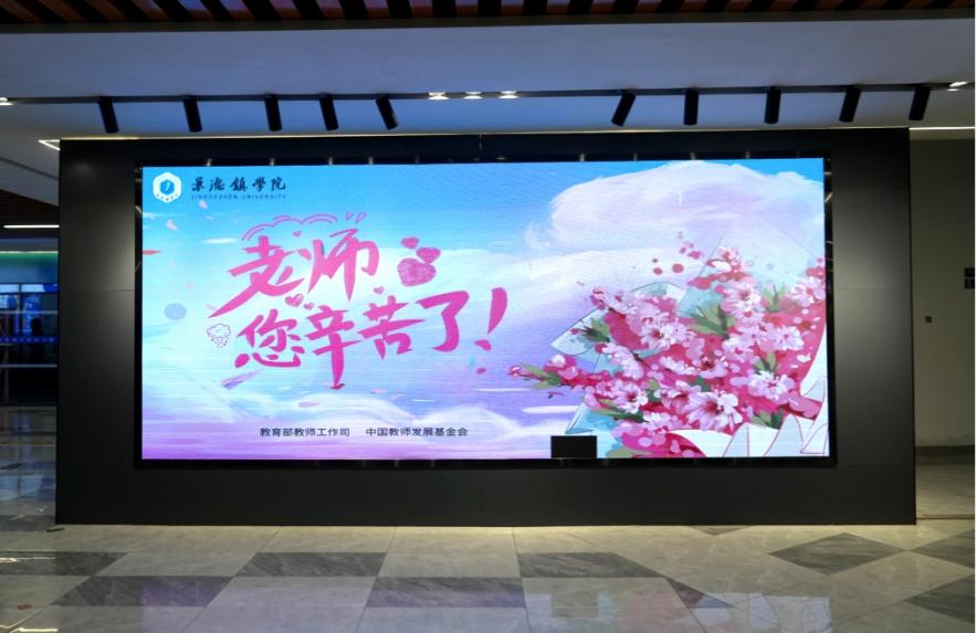 “大力弘扬教育家精神加快建设教育强国”“热烈庆祝第四十个教师节!”“教师节快乐!”“老师,您辛苦了!”学校各处的电子LED屏幕纷纷亮起,以图片和字幕滚动的方式向全校教师致敬,细微光芒,汇聚成海,表达了对老师无尽的感激与诚挚祝福,点亮了教师们那份未曾言说、坚守教坛默默耕耘的崇高情怀,更照亮了学子们不负青春、勇往直前的光明之路,激励着师生在知识的海洋中一同乘风破浪,砥砺前行,共绘教育的美好时光。