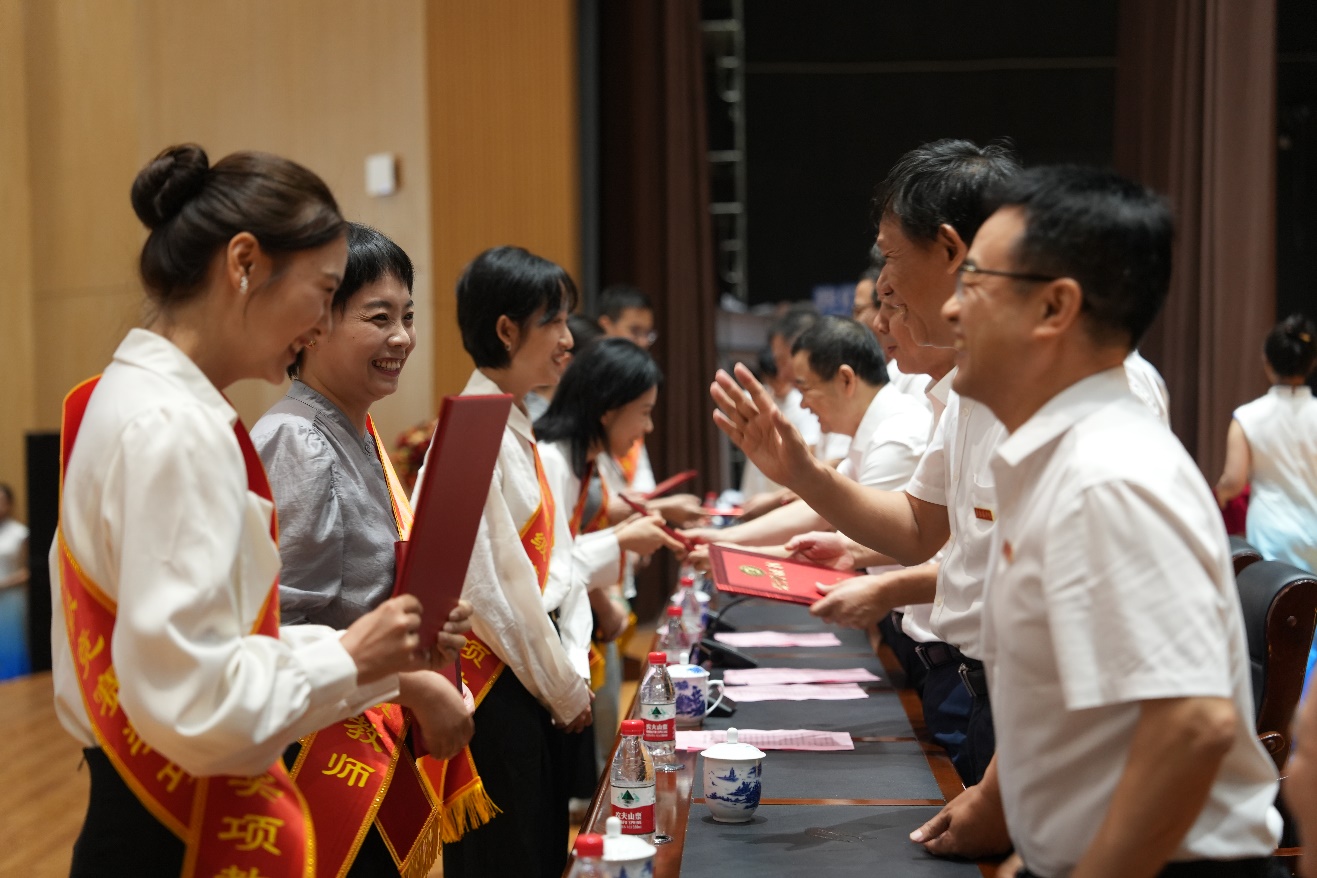 校领导为受表扬的先进集体和个人颁奖——他们以实际行动诠释了“学高为师,身正为范”的崇高师德。参会人员纷纷表示要以先进为表率,秉承进取之心,践行实干之道,怀揣爱生之情,携手并进,共创佳绩,以行动助力学校高质量发展,共绘教育美好蓝图。
