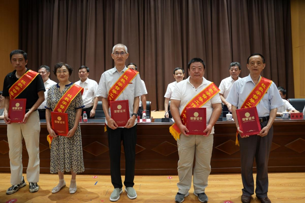 校领导为荣誉退休教职工颁奖 校融媒体中心记者廖翊君摄