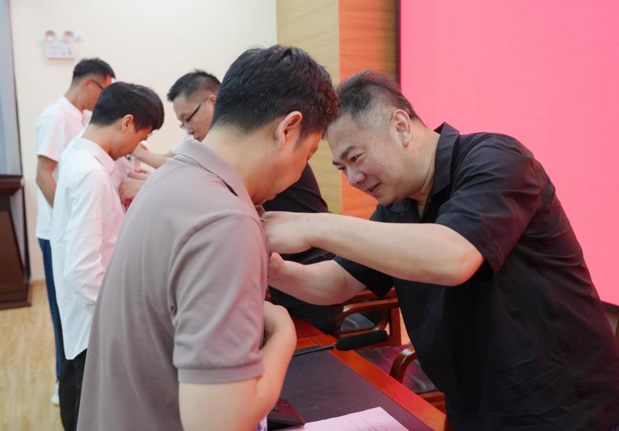 开班仪式上,司春灿介绍了新入职教师岗前培训的具体安排及要求,与会领导为新进教师代表佩戴校徽,全体新入职教师签订“BEAT365英国官网教师师德承诺书”。
