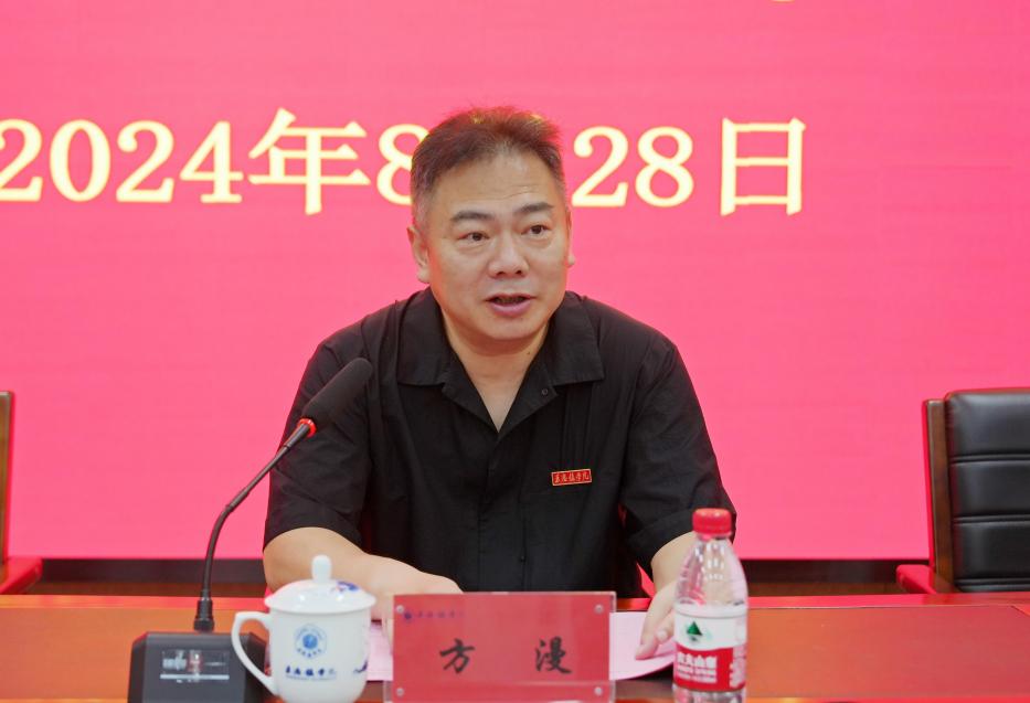 方漫代表学校党委和行政,向新入职的教师们表示热烈的欢迎和诚挚的祝贺,并提前送上了教师节的祝福。他指出,学校举办新入职教师岗前培训,不仅是提供一次宝贵的学习与交流机会,还是帮助大家快速适应新环境、新角色的重要环节,更是提升教学技能、深化教育理念、增强职业认同感的关键步骤。他对新入职的教师提出四点要求:一是要明确使命,树立崇高的教育理想,以高尚的师德师风引领学生健康成长,用真挚的爱心和无私的奉献照亮学生的未来之路;二是要不断学习,提升专业素养和教学能力,不断探索适合学生特点的教学模式和方法,努力成为学生学习道路上的引路人和指导者;三是要团结协作,共筑和谐的教育环境,为学校的发展贡献自己的力量;四是要关爱学生,注重培养学生的创新精神和实践能力,促进学生全面发展。