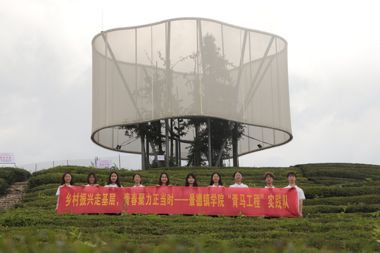 青年大调研,深耕赣鄱大地。实践队沿着习近平总书记考察江西的足迹,带着对乡村振兴事业的深厚情感,踏入了这片充满希望的土地——寒溪村。在史子园茶园,实践队被这里独特的绿色生态与艺术元素的完美融合深深吸引。特别是那座矗立于茶山之巅的“大地之灯”艺术装置,不仅成为茶园中的一道亮丽风景线,更寓意着乡村文化的光明未来。寒溪村党支部副书记方冬生详细地向实践队介绍了“艺术在浮梁”项目是如何为史子园茶园注入新的活力,以及茶园如何将茶资源整合到研学活动中,促进了寒溪村知名度的提升和旅游业的发展。
