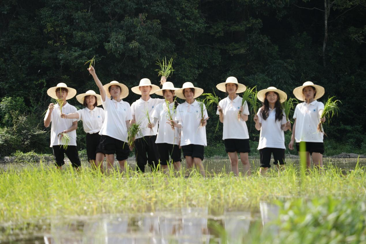 “青马工程”实践队在水田里插秧 廖云峰摄