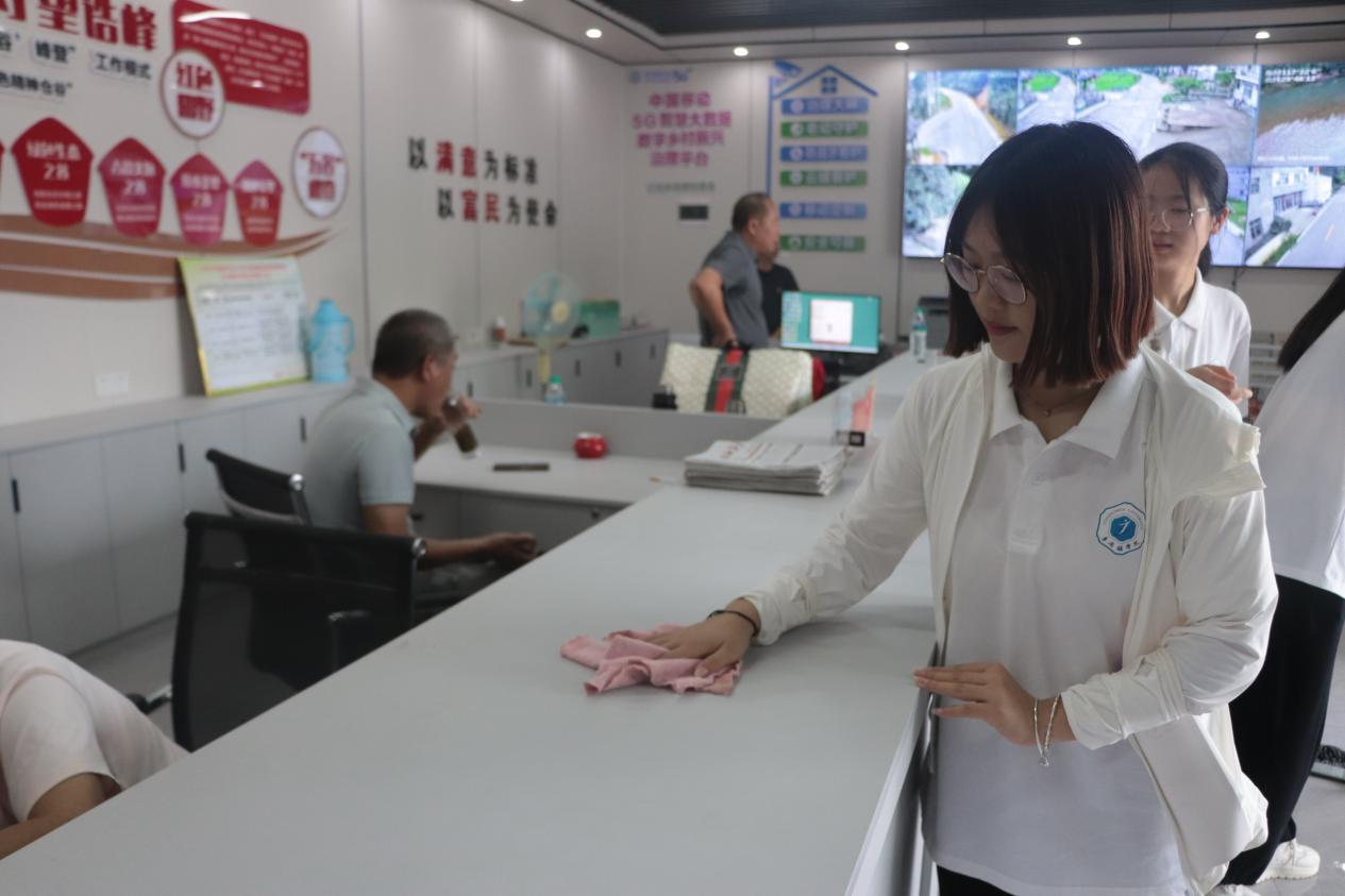 “青马工程”实践队在新时代文明实践站室内进行清扫 廖云峰摄
