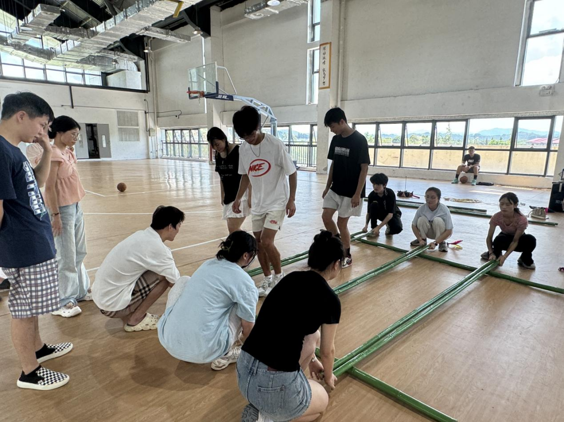 布依族同学为大家详细介绍了布依族的民族习俗和民族文化,并对“六月六”等地方民族文化进行了细致解说。布依族是一个以农耕为主的民族,竹竿在日常生活中有着重要作用。每逢重大节日与迎接贵客时,大家都会欢聚一堂,载歌载舞,将竹竿舞作为表达喜悦和庆祝的方式。竹竿舞已经成为布依族生产生活中不可缺少的一种民族文化。在一片欢声笑语中,师生共同舞动竹竿,伴随着布依族音乐,跟随着节奏跳起了竹竿舞,整个活动过程充满了民族团结色彩和浓厚的文化氛围。