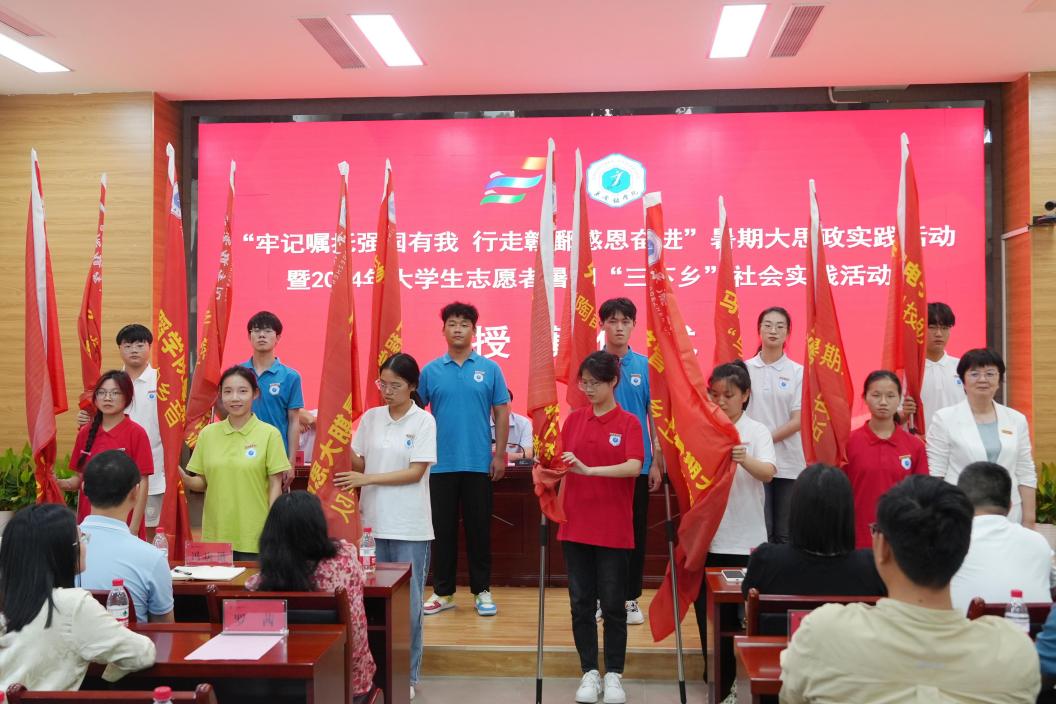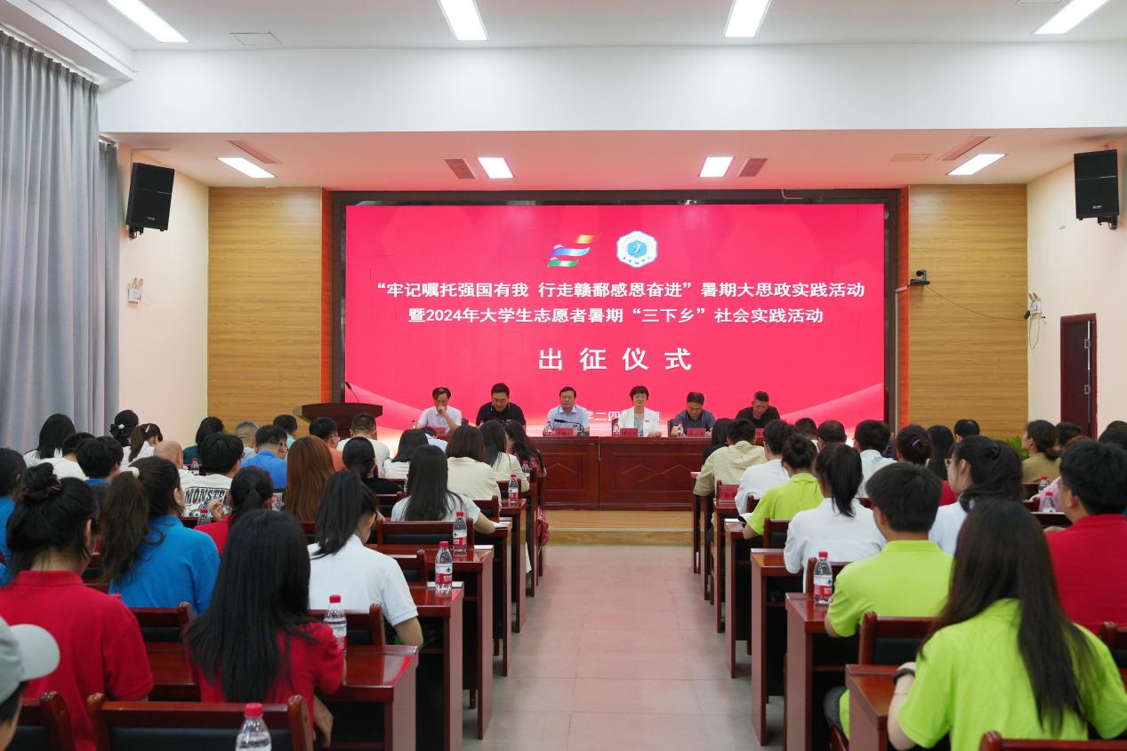 BEAT365官网举行“牢记嘱托强国有我 行走赣鄱感恩奋进”暑期大思政实践活动暨2024年大学生志愿者暑期“三下乡”社会实践活动出征仪式
