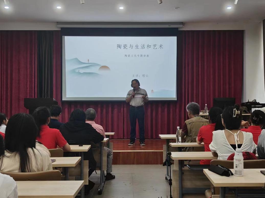 在讲述过程中,程云教授向同学们介绍了陶瓷文化的概念和时代审美特色。陶瓷作为中国的传统文化符号,自古以来就扮演着中国走向世界的重要角色。程云教授表示,陶瓷文化是科技与艺术的结合体,影响着人们物质和精神生活的方方面面。随着科技的进步,陶瓷文化不断发展,保持着传统文化的深厚内涵,同时又在不断创新、与时俱进。