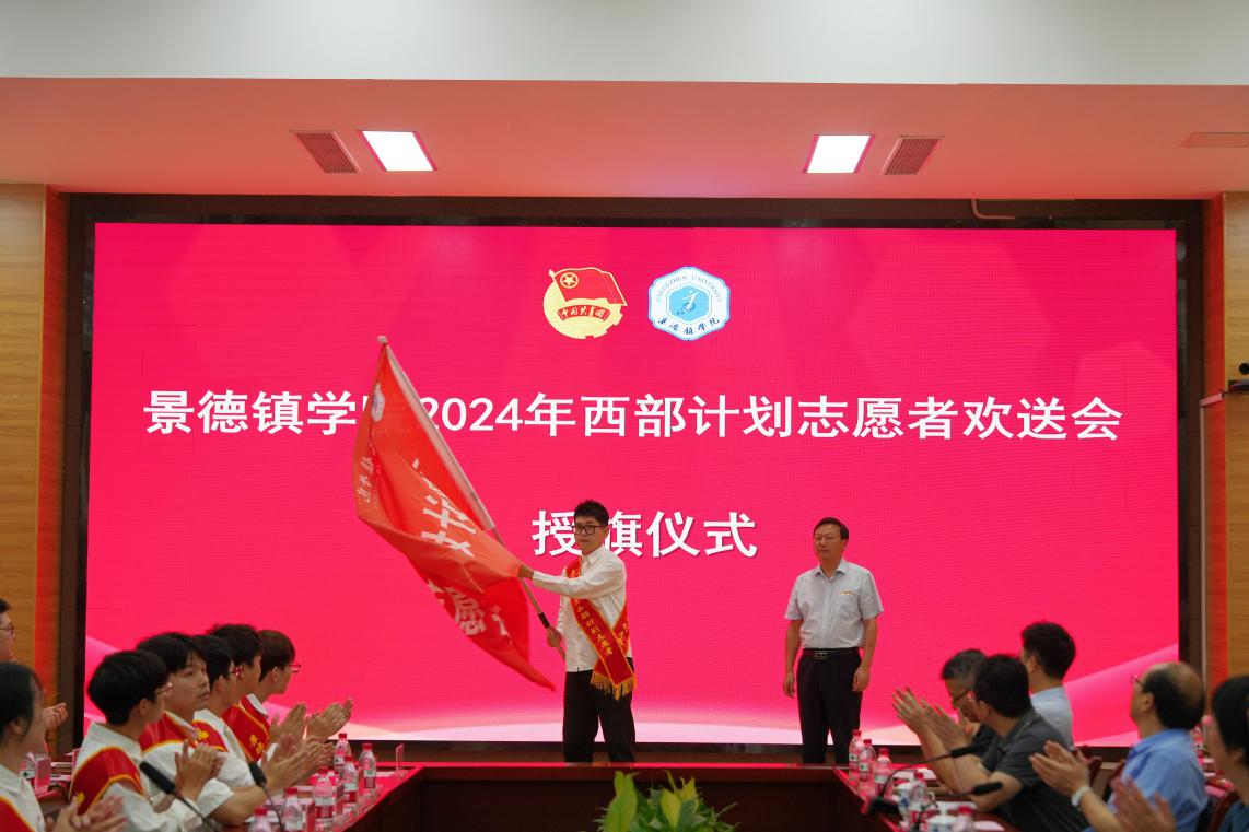 王丽心为志愿者授旗,对入选2024年西部计划和江西乡村振兴项目的志愿者表示祝贺,并提出四点希望:一是不断提升思想境界。希望志愿者们树立远大的共产主义理想,并在实践中反复思考,提升境界,把个人人生抱负的实现与中华民族的伟大复兴结合起来,真正把提升境界作为不懈追求的优良品德。二是注重陶冶个人情操。希望志愿者们把继承中国的优秀传统文化和培养新时代的情操结合起来,成为宽容待人、胸襟开阔的人。三是锤炼本领锻炼能力。希望同学们不断增强学习能力、实践能力、创新能力。牢记“自强不息,泽土惠民”的校训精神,未来在基层岗位上面对可能遇到的困难时,能够用一往无前的勇气去克服、解决。四是做民族团结进步的践行者。希望同学们牢固树立“三个离不开”的民族团结思想,深化对祖国、对中华民族、对中华文化、对中国特色社会主义道路的认同,用自己的专业特长和实际行动服务各族群众,做民族团结进步的践行者,让景院青年的青春之花在火热实践中绚丽绽放。
