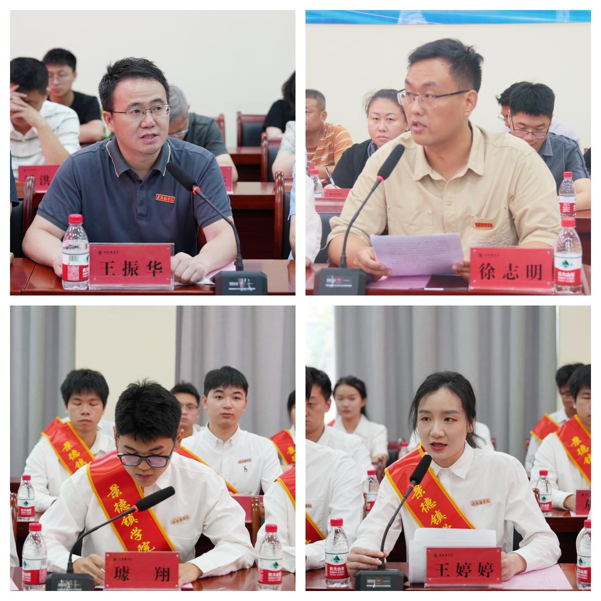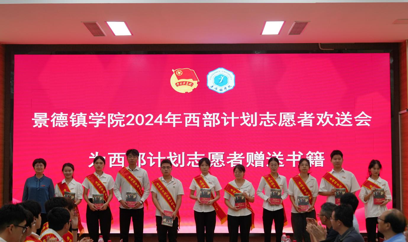 周清平为西部计划志愿者赠送《习近平与大学生朋友们》等书籍;赵雪政为西部计划志愿者赠送学校文创纪念品。会上,校团委还汇报了学校2024年西部计划志愿者及江西省乡村振兴计划招募的整体情况。经济管理学院党委书记王振华、辅导员代表徐志明分别发言,肯定了志愿者们的积极奉献,并送上了美好的祝福;志愿者代表、陶瓷美术与设计艺术学院璩翔和经济管理学院王婷婷两位同学分别发言,讲述了自己选择西部计划的初衷,表达了投身基层建设的信念和决心。
