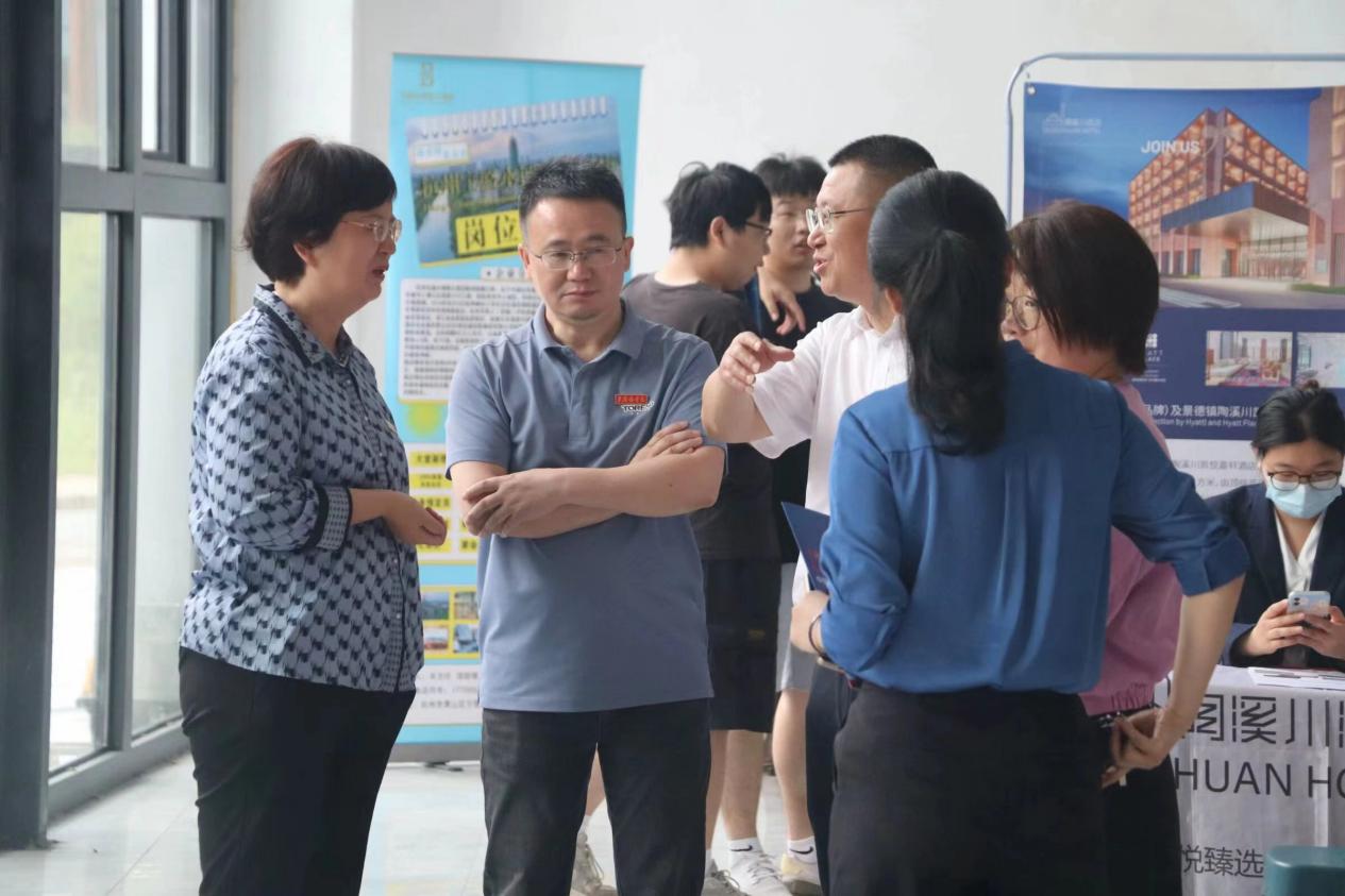 为做好学生就业工作和筹备此次招聘会,经管学院全院教职工一起行动。自今年3月份开始,经济管理学院领导以及各科室、各教研室负责人分别带队前往景德镇国控、陶文旅集团、黑猫集团、长虹华意等国有大型集团公司,浙江京东、浙江顺丰、江西韵达等大型物流企业,陶博城、浙江方里等电商平台公司,嘉兴铂金湾、上海悦及第、上海宰相府、浙江水博园、景德镇紫晶宾馆等大型四星级以上酒店以及中航证券、瑞奇期货等证券金融公司,共计30余家企业访企拓岗,考察企业用人需求,探索“新岗位新业态”的就业模式,并就学生就业和此次招聘会事宜做了精准对接。