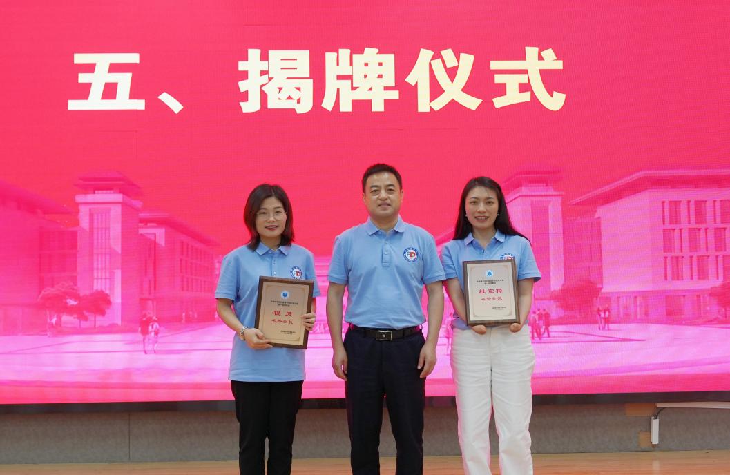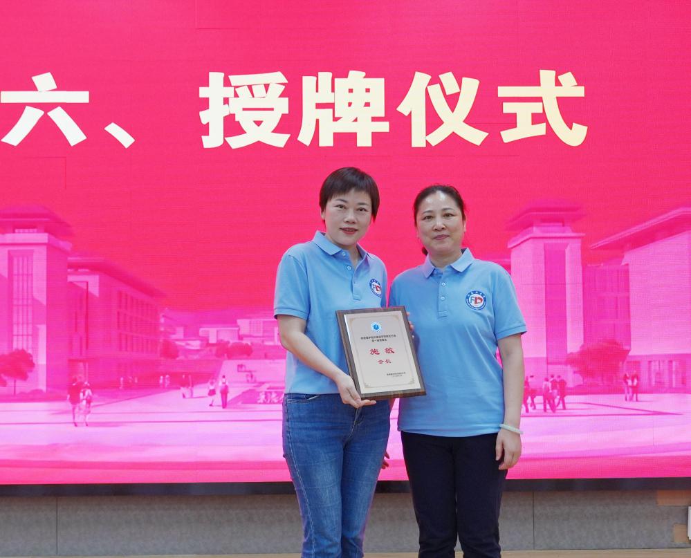 程立新、吴芹为副会长、秘书长、副秘书长授牌 校报记者赵诗莹摄