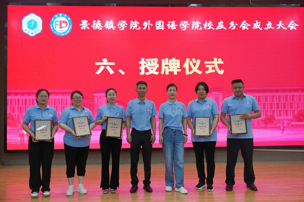 罗少韬和会长施敏共同为外国语学院校友分会揭牌,并为名誉会长程风、杜宣梅授牌,万文军为会长施敏授牌,程立新、吴芹为副会长江爱华、甘发松、包勇文、水冰清以及秘书长胡丽娟、副秘书长张阳洋授牌。