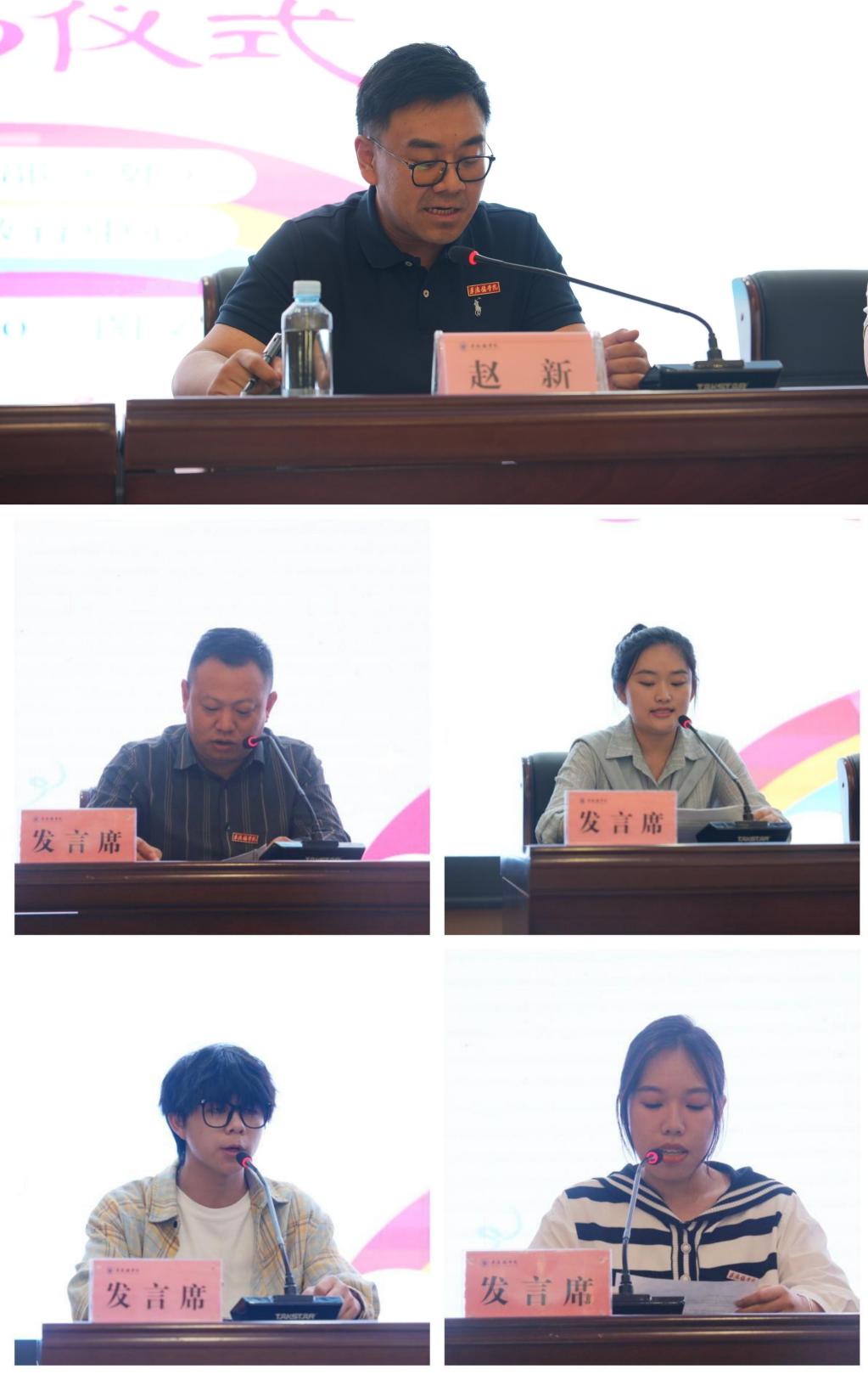会上,学工处副处长(主持工作)赵新,陶瓷美术与设计艺术学院党委副书记、心理辅导站站长胡文毅,心理专干代表、音乐舞蹈学院辅导员董帅,班级心理委员、经管学院杨书航同学和寝室心理联络员代表、外国语学院苏志贤同学逐一发言。