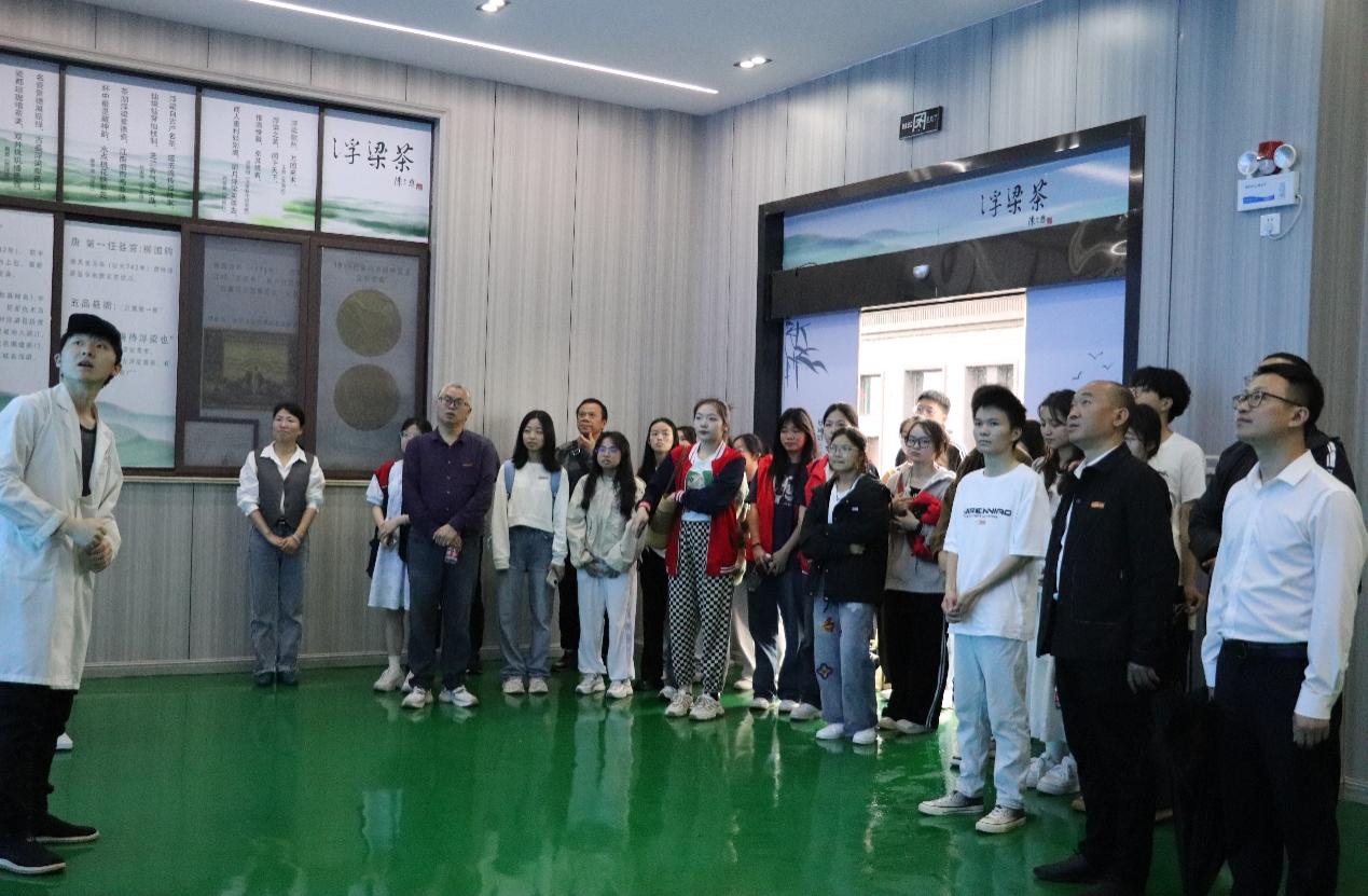 随后,师生考察团一行来到流口村,参观了浮梁县农业开发有限公司的现代农业产业园,深入了解了流口村“党建+移民”的特色党建工作和实现乡村振兴的举措——以“茶种植,茶加工,茶文化,茶研究,茶观光”为主导发展建设,实现了农业与旅游业的深度融合,近3000亩山林耕地被有效利用,为现代农业产业园的建设提供了有力支撑。