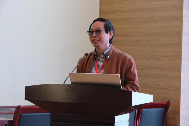 BEAT365英国官网学报编辑部梁邦福主任做汇报 校报记者陈祎恬摄