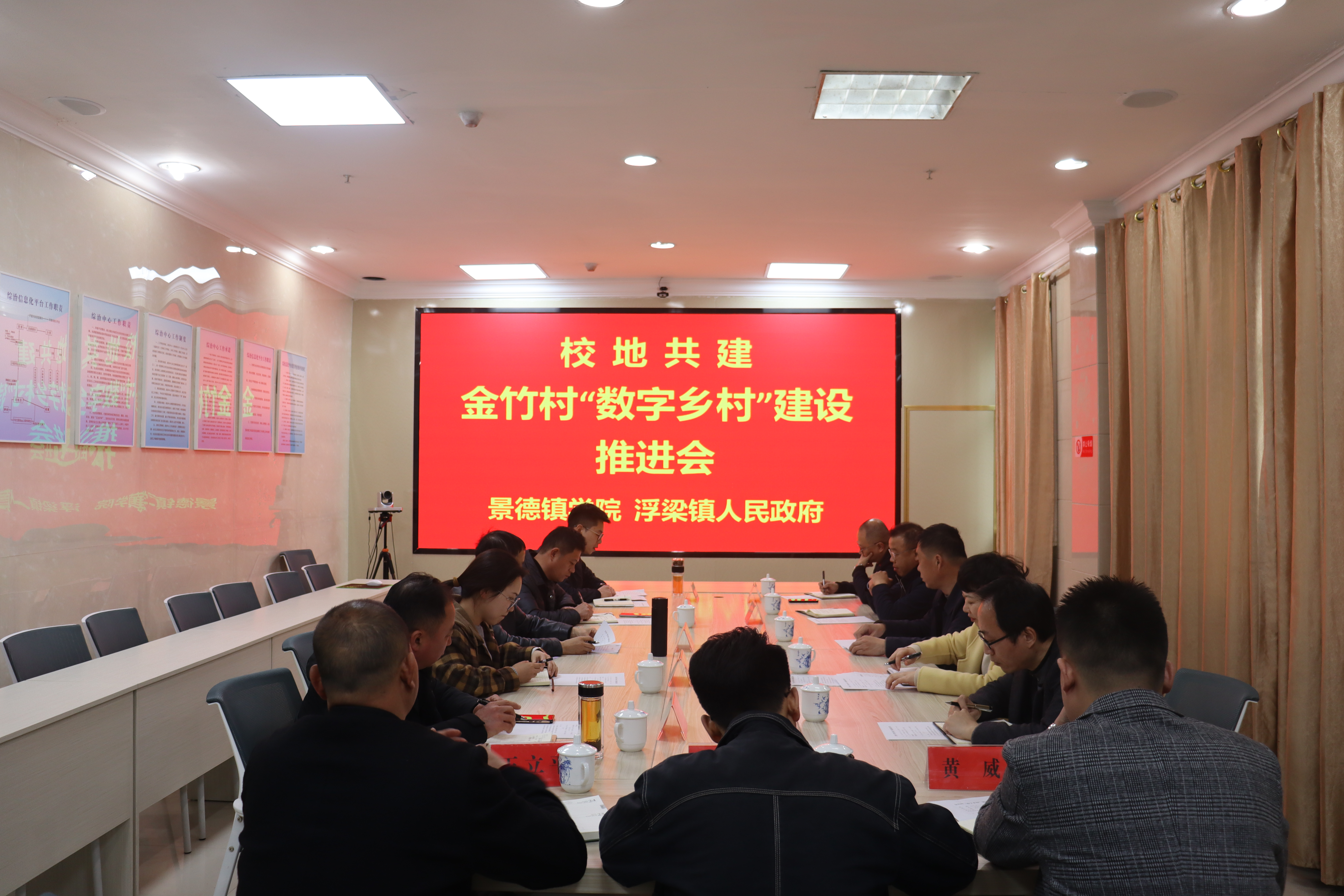 (本网讯:吕云飞)为深入推进校地融合,助力乡村振兴,3月中旬,校党委委员、组织部部长朱贺江,信工学院党委书记练缤艳、副院长(主持工作)李香泉、党委副书记万涛、副院长饶国勇等人前往浮梁镇参加金竹村“数字乡村”建设推进会。会议在浮梁镇镇政府一楼综治中心会议室召开,浮梁镇党委副书记、镇长任爱民主持会议。