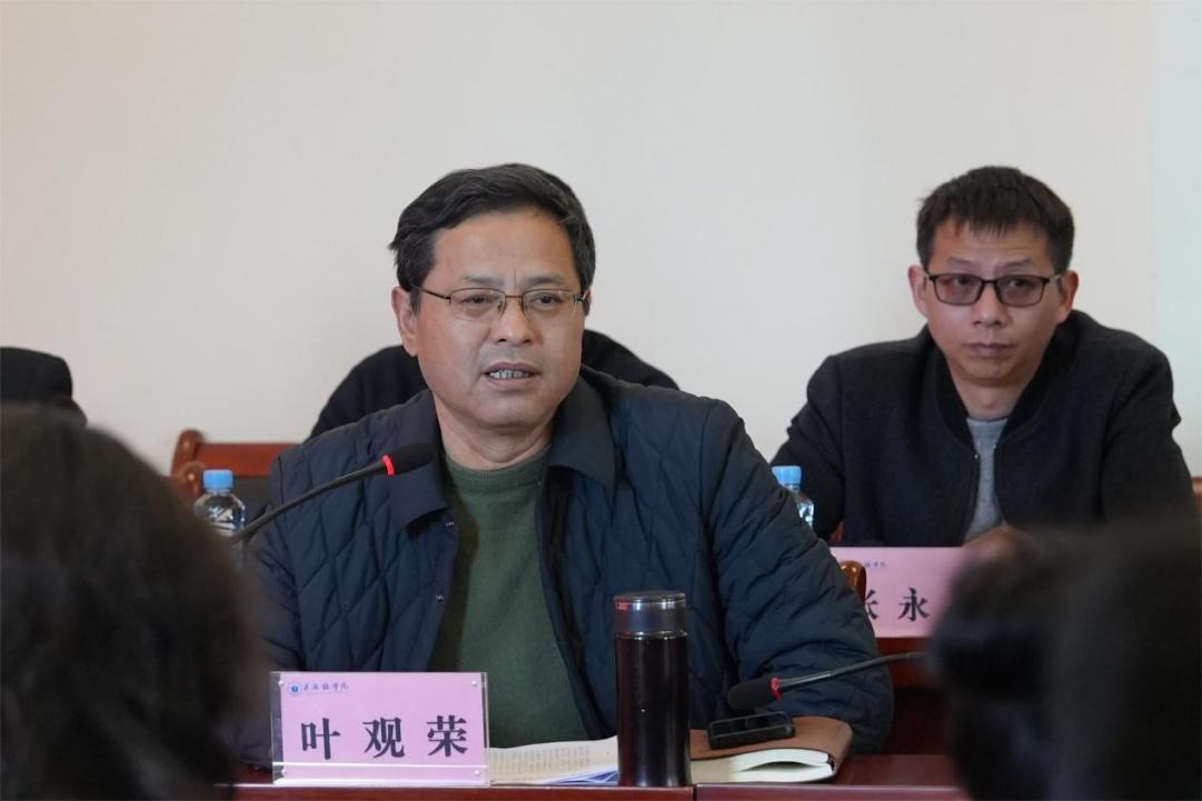 叶观荣指出,今年的全国两会是在新中国成立75周年、实现“十四五”规划目标任务的关键之年召开的重要会议,全校上下要深入学习贯彻全国两会精神。他强调,要把学习贯彻两会精神作为一项重大的政治任务,深学细悟习近平总书记重要讲话精神和全国两会精神,在全校广大师生、党员干部中迅速掀起学习热潮;要把学习重点作为能力提升关键环节,“高质量发展”和“新质生产力”的理念融入到学校高质量发展中;要把推动学校发展作为学习目的,围绕师范类专业认证、协同提质工作、二期建设、项目申报等重点工作,不断完善工作机制,优化人才培养模式,建强应用型本科高校。