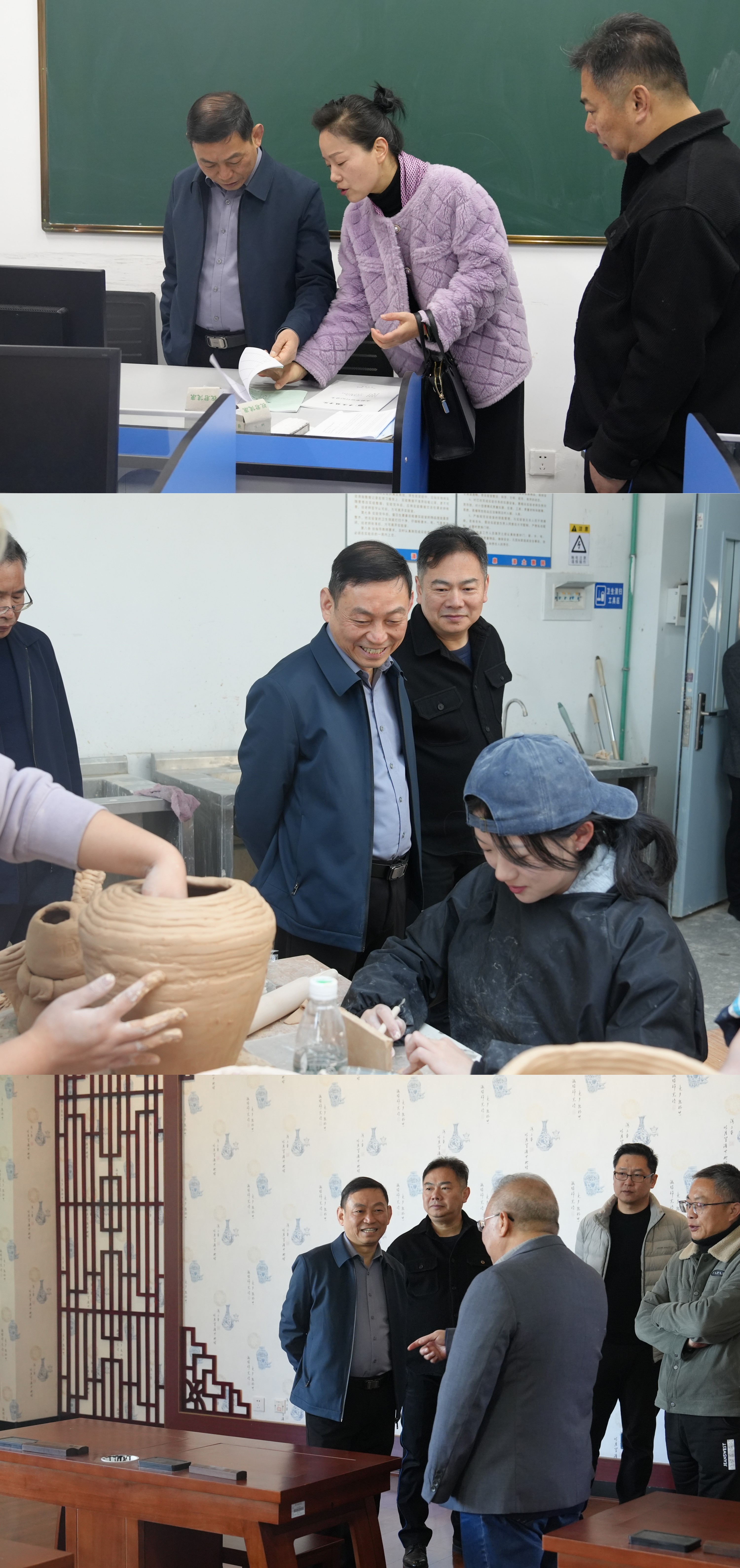 (本网讯:李婷婷、校报记者丁小娟)3月20日上午,校党委副书记、校长陈运平,党委委员、副校长方漫先后走访外国语学院、陶瓷美术与设计艺术学院、教育学院调研师范类专业认证工作准备情况。