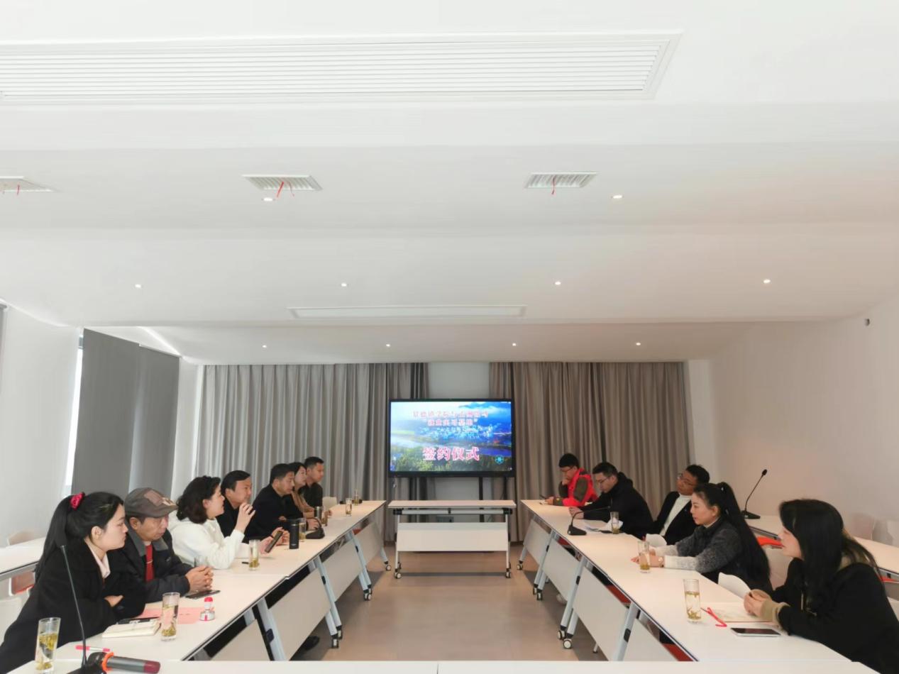 音乐舞蹈学院院长于芳与正洲体育董事长李正雪签约 吴雨泽摄