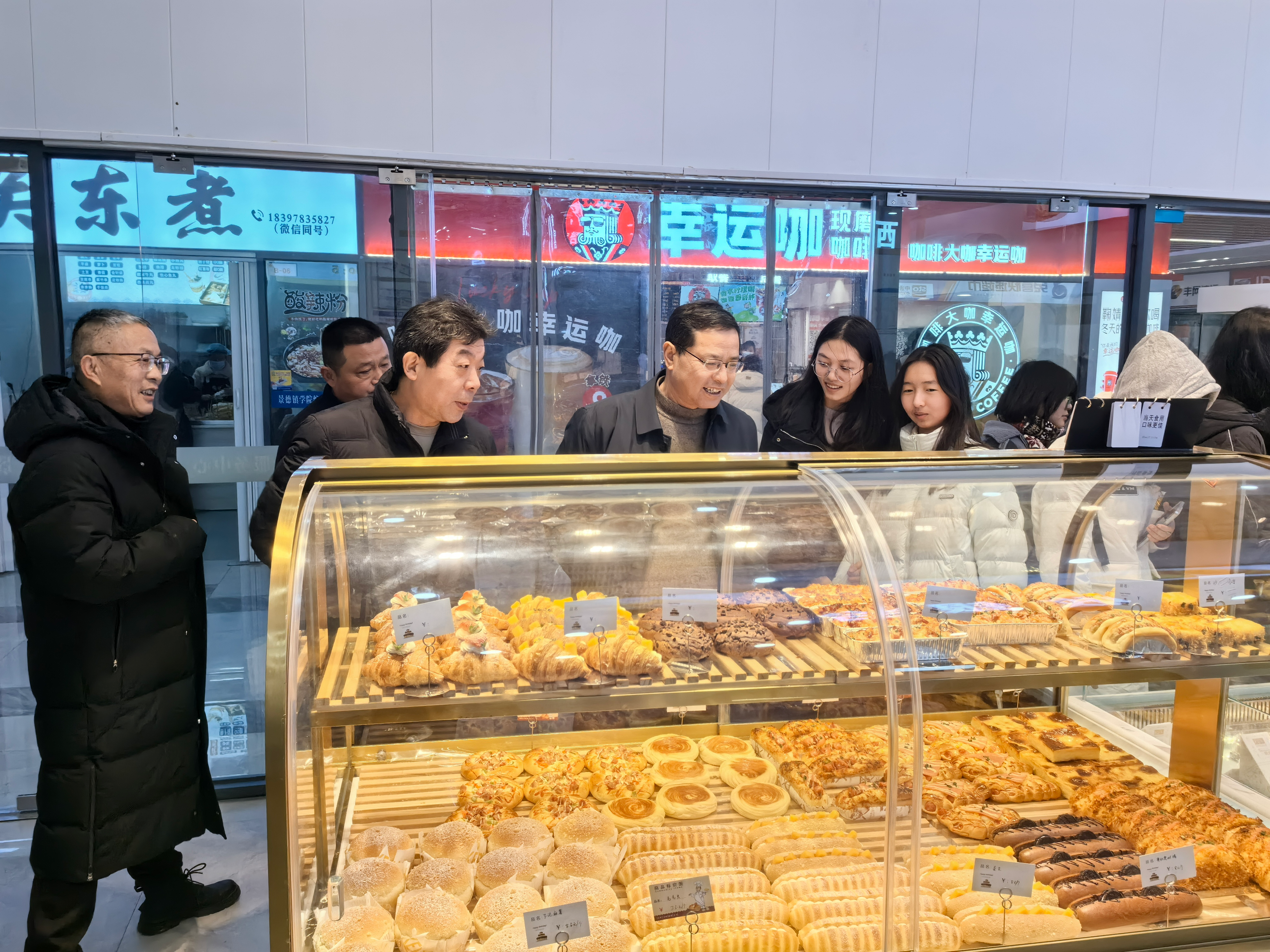 活动开始前,叶观荣、郑昕芾等走访了产教融合综合中心,对学校商店卫生、餐饮服务人员戴口罩等情况进行检查,还对灭火器等相关消防设施情况是否能正常使用,各个楼栋的安全出口、疏散通道是否通畅、疏散标志是否齐全进行了仔细排查。检查过程中,校领导们与正在产教融合大楼中购物、取件的同学亲切交流,听取他们对学校工作的建议和意见,并叮嘱他们要注意日常安全、提升安全意识,特别是用电安全和防火安全意识,要时刻绷紧安全弦。