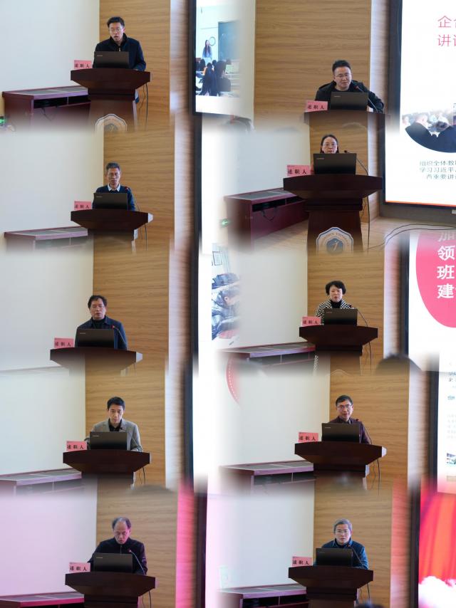 各二级学院党委书记围绕基层党建工作重点任务的完成情况、工作亮点、存在的问题及原因等方面汇报了2023年度抓党建工作情况,并立足下一年度工作目标,汇报了2024年度工作计划。针对存在的问题,提出务实有效的解决措施,切实做到提高政治站位,压实基层党建工作责任,推进全面从严治党向基层延伸。