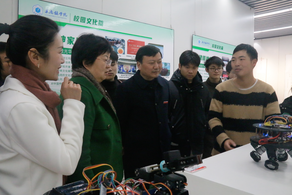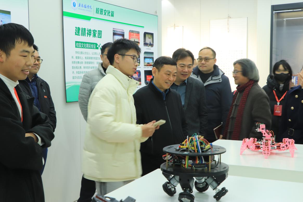 校领导参观学生制作的机器人 校报记者钟四花摄