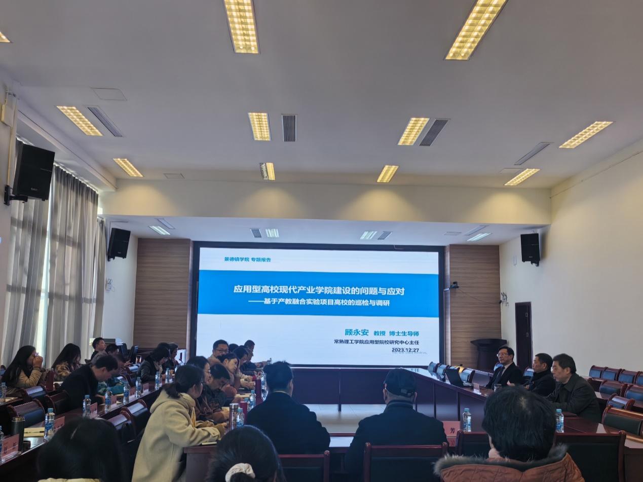(本网讯:校报记者周可玮、曾梦婷、江珍燕、黄颖)为全面推进BEAT365官网应用转型,加快现代产业学院建设,扎实推进校地、校企、校产融合,12月27日,BEAT365官网举办“如何建设现代产业学院”专题讲座,常熟理工学院应用型院校研究中心主任顾永安教授应邀来校做分享,党委副书记、校长陈运平出席,党委委员、副校长郑昕芾主持讲座。