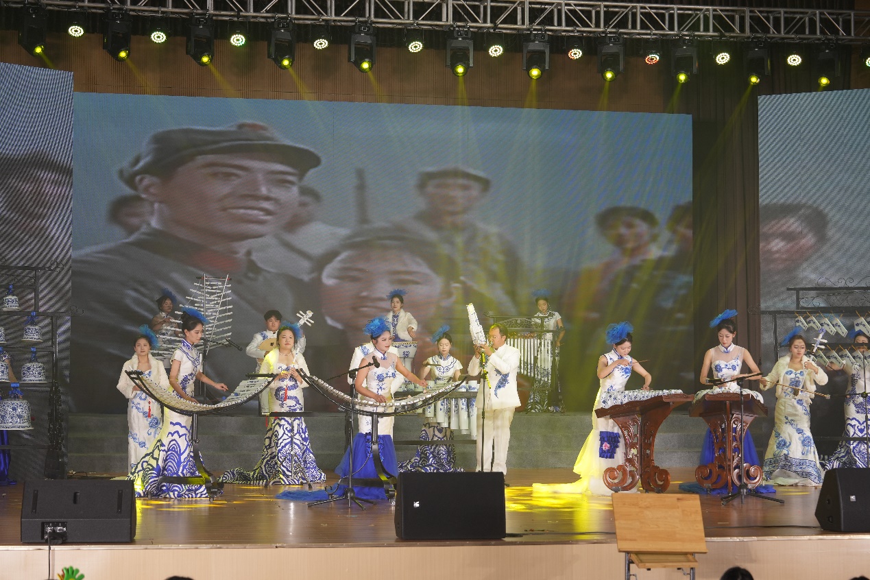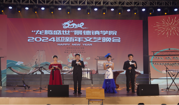 音乐舞蹈学院舞蹈团以热情洋溢的多民族开场舞活跃带动了全场的气氛,同时拉开了迎新晚会的序幕。校瓷乐团带来的《花好月圆》、《送郎当红军》两个瓷乐合奏曲目,扣人心弦;女声合唱组演唱土家族歌曲《直尕思得》,一气呵成,民族特色鲜明突出,显现强大生命力;教育学院学子朗诵声情并茂,朗朗上口的《青春的浪花拍了拍你》点燃青春热情。音乐舞蹈学院舞蹈团的花腰傣《陶醉》、人文学院的原创话剧《瓷国匠心》等一批包含中华优秀传统文化元素、陶瓷音乐元素、红色文化元素、民族文化元素以及当下时尚元素的节目依次登台亮相,独具匠心又美轮美奂的节目给线上线下的观众们带来无与伦比的视听盛宴,赢得了广大师生的一致好评。