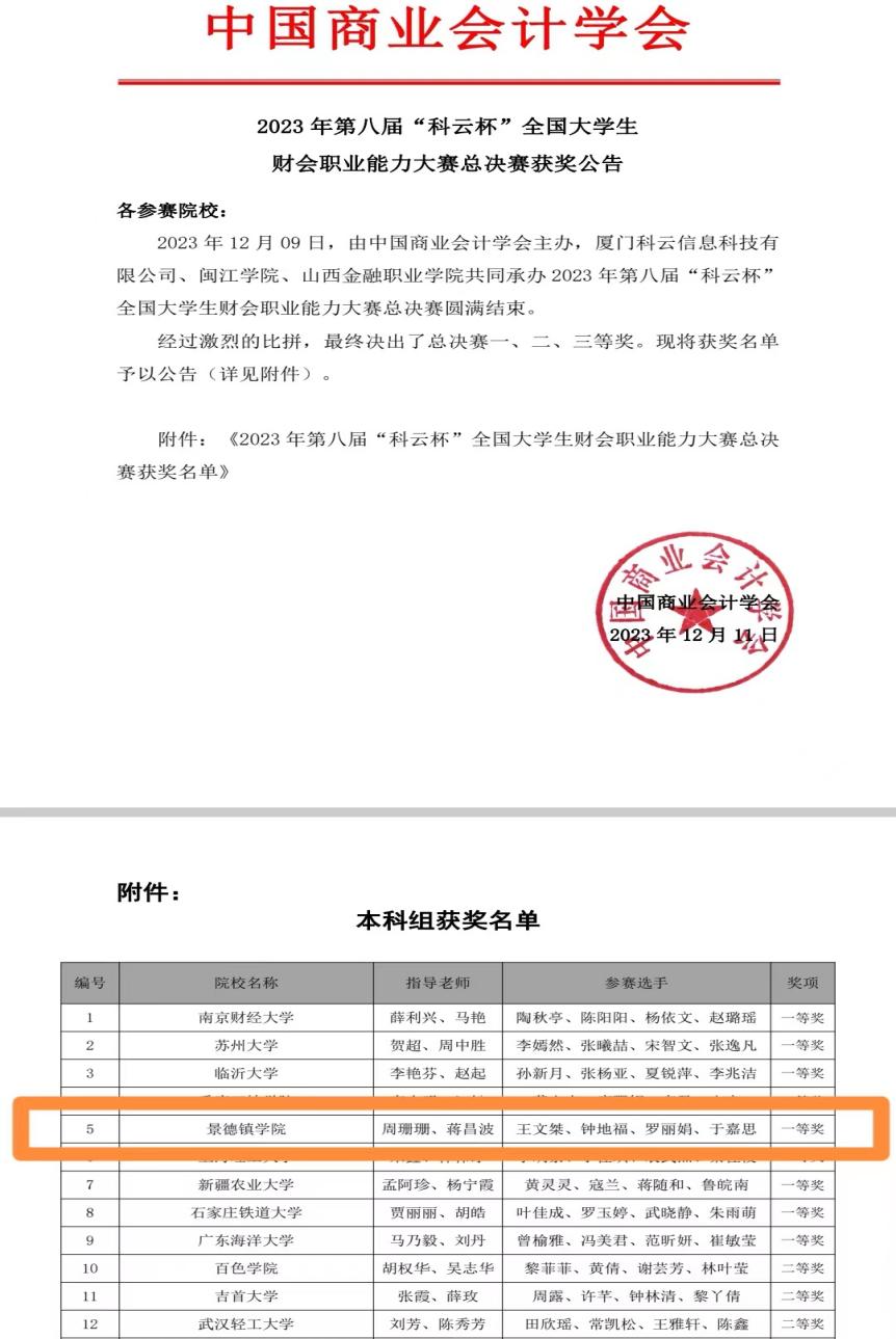 【喜报】经管学子在2023年第八届“科云杯”全国大学生本科组财会职业能力大赛总决赛中荣获一等奖