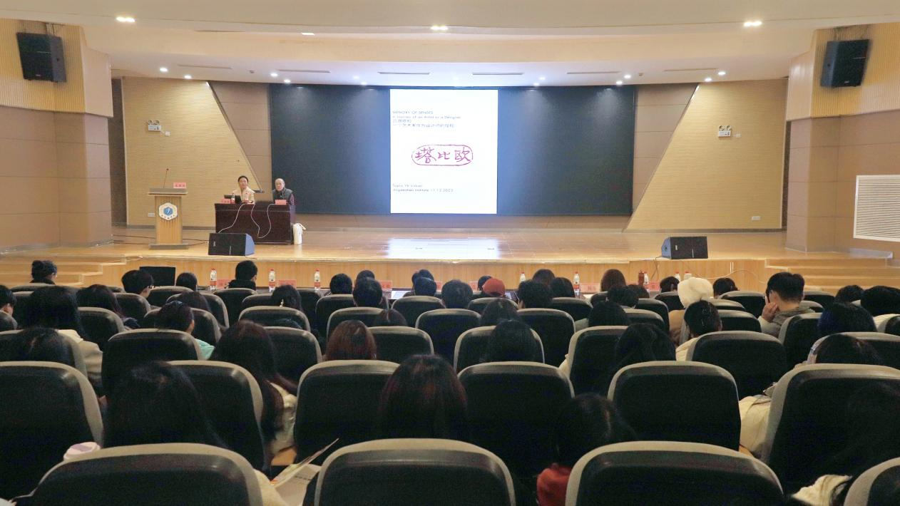 塔比欧教授还与学生们分享了他历年以来在中日韩美等国的设计作品和艺术经验。他的作品充满创新,展现了他独特的艺术思维。他的艺术经验不仅让学生们感受到了设计的魅力,同时也给他们提供了一些实用的设计思路和方法。塔比欧教授表示,艺术是一种表达个人内心世界的方式,设计是一种解决问题的手段。希望大家能够找到自己的方式去表达和解决问题,创造出属于自己的艺术作品。