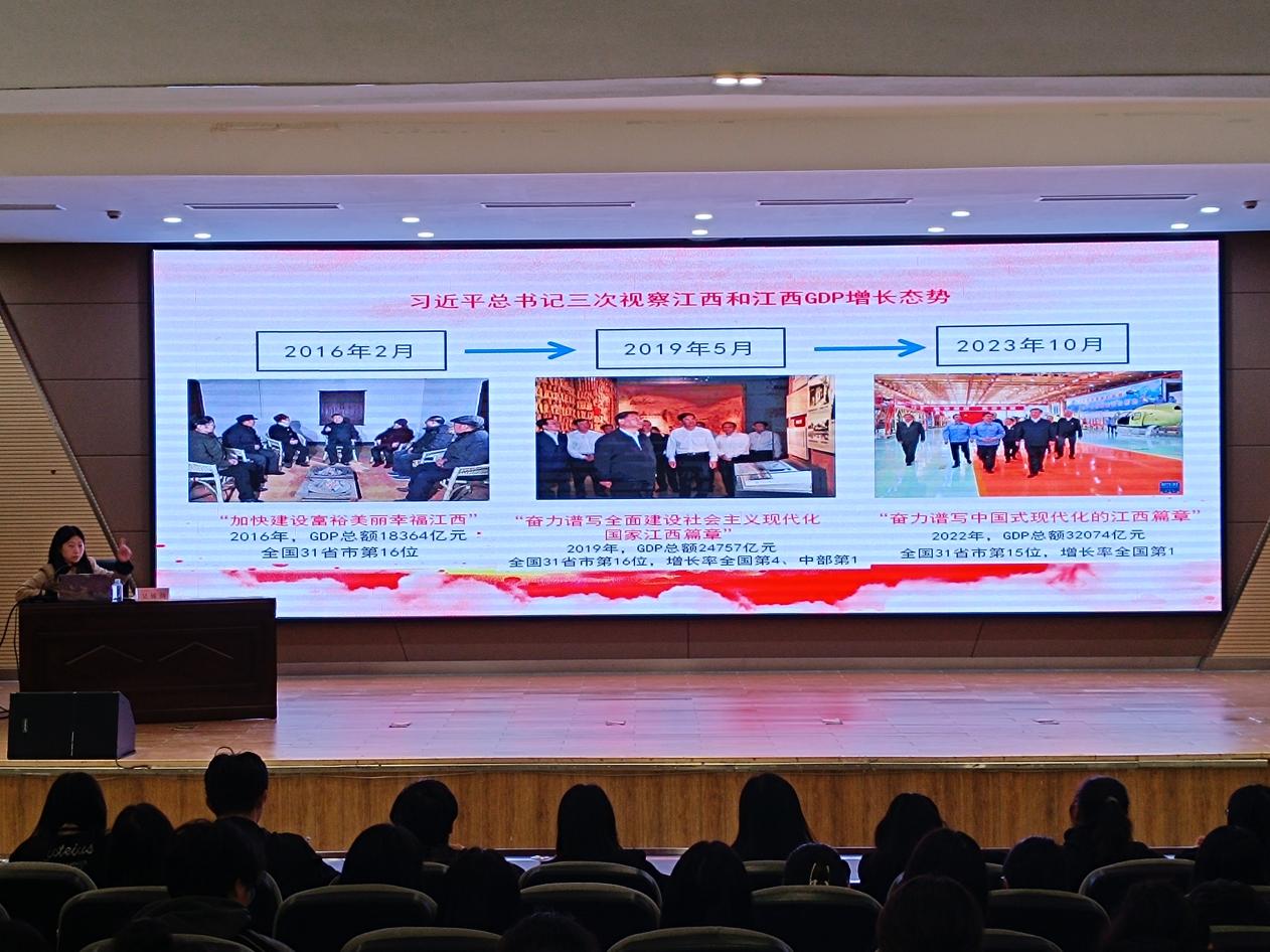 为了更好的巩固实践中的理论学习,马克思主义学院吴姝韵老师围绕习近平总书记考察江西重要讲话精神,在图文报告厅以“奋力谱写中国式现代化江西篇章”为题,从“保护”、“发展”、“传承”、“振兴”、“融通”五个方面带领大家深入分析了江西发展的情况与未来发展战略,深入找寻“如何奋力谱写中国式现代化江西篇章”的答案,深入体悟习近平总书记的殷切期望,为同学们上了一堂生动的思政课。同学们深刻认识到,新时代是奋进的时代,更是融汇的时代,在新征程的途中,大家仍需踔厉奋发,勇毅前行。
