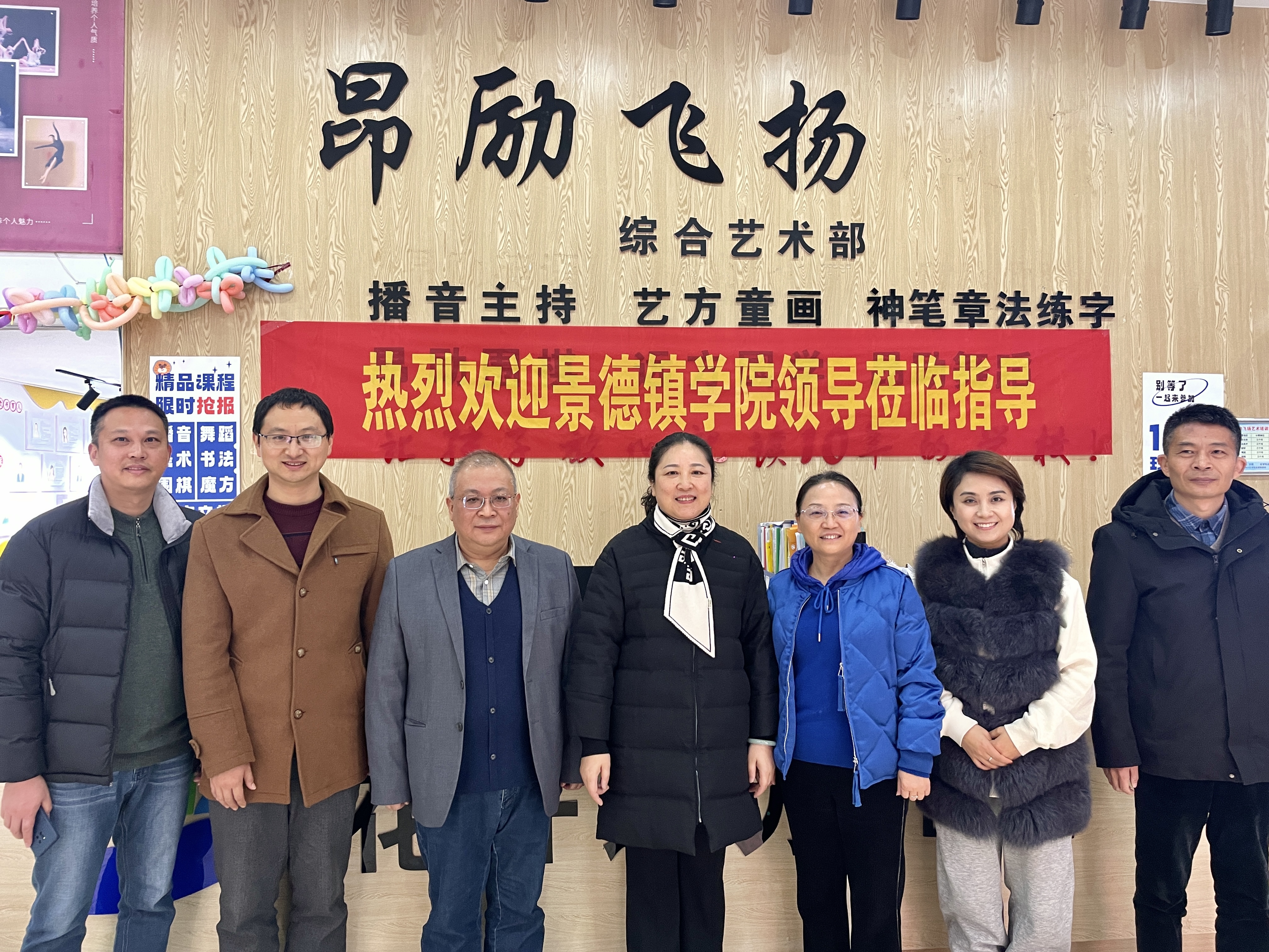 万文军一行在昂励飞扬艺术培训有限公司合影 罗茜摄