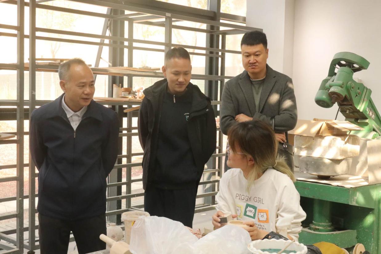 梁华江一行人还在艺术学院副院长朱希睿陪同下参观了艺术学院,双方从多样性教学和理论实践角度探讨了人才培养方式,并参观了学生成果展示,走进学生拉坯课堂,与同学们亲切交谈。