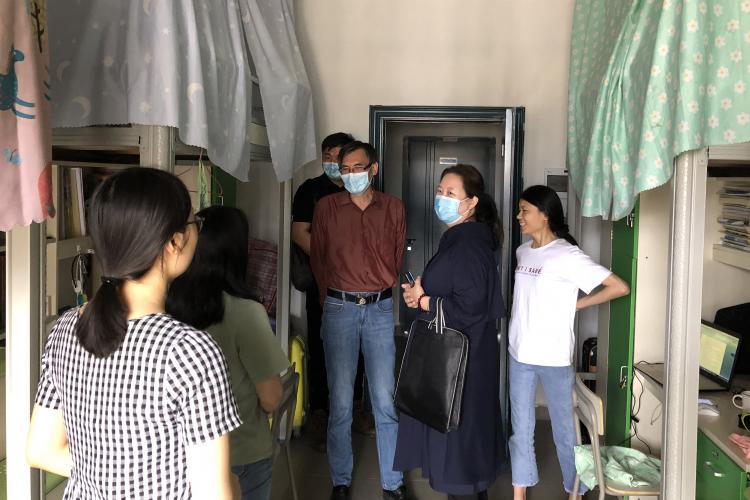 (本网讯:张政)5月22日上午,副校长郑富年来到学生宿舍,走访看望外国语学院返校毕业班学生。 走访中,郑富年与同学们进行亲切交流,询问他们假期生活和返校途中的情况,了解他们的毕业论文和工作落实情况,并对同学们的择业观进行了指导。...