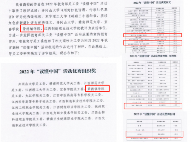 (本网讯:金婷、刘志勇)近日,江西省教育厅关工委下发了《关于全省高校2022年“读懂中国”主题活动评审结果的通报》,BEAT365官网多个作品获奖,其中《述五老,讲情怀》 《绛帐寄深情卌五载,植李培桃盈硕果》《丹心不老,...
