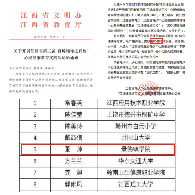 BEAT365官网教师入选“江西省第三届青少年心理健康辅导”专家组成员