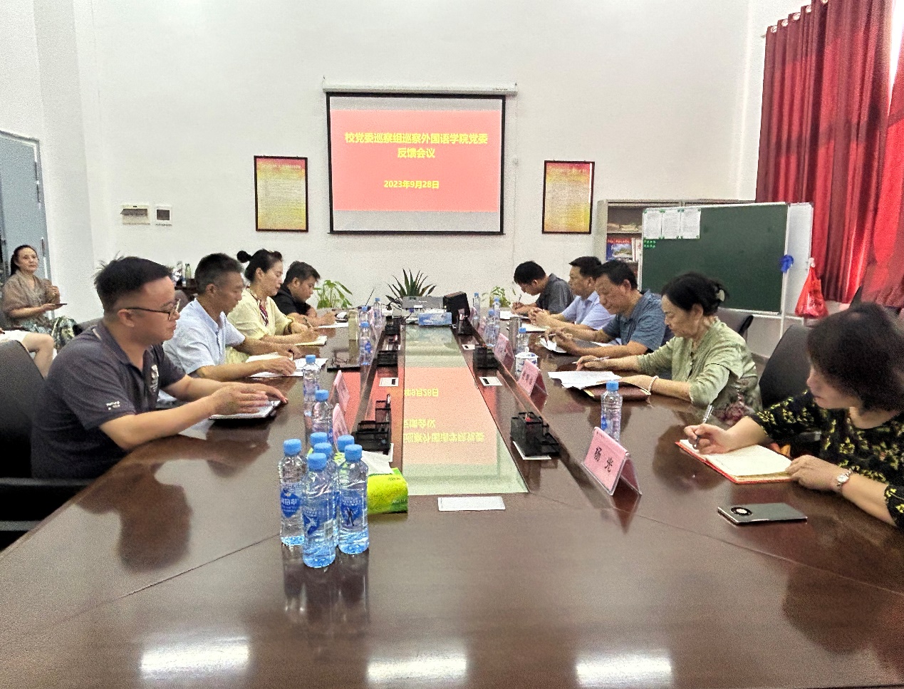 (本网讯:徐涛)9月28日下午,校党委巡察组巡察外国语学院党委反馈会议在外国语学院党员会议室召开,会议学习传达了校党委书记专题会听取外国语学院巡察情况的讲话精神,副校长黄志坚,校党委巡察组组长钱鸣华出席会议,...