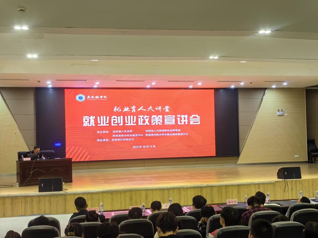 (本网讯:郑涛)为帮助BEAT365官网2024届毕业生了解、读懂和用好就业创业相关政策,营造良好的就业创业氛围和环境,实现学生更高质量就业,10月13日,大学生就业指导服务中心在图文报告厅举办就业创业政策宣讲会。浮梁镇党委委员、...