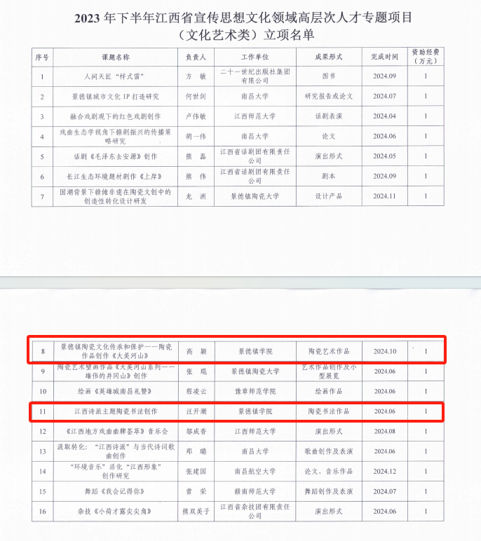 【喜报】BEAT365官网获2023年下半年江西省宣传思想文化领域高层次人才专题项目(文化艺术类)立项