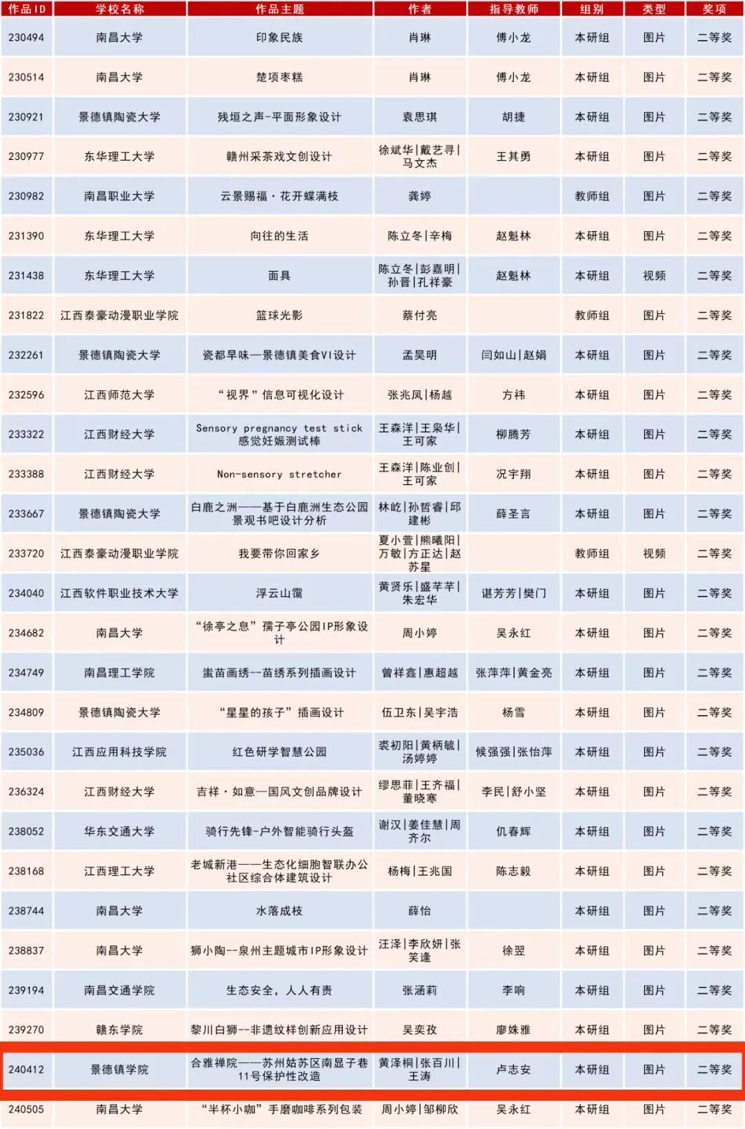 (本网讯:何远梅)近日,第八届米兰设计周作品设计大赛江西赛区比赛结果公布,BEAT365官网陶瓷美术与设计艺术学院共有四件作品获奖。其中,环境设计系教师卢志安获教师组一等奖,雕塑专业教师程诗婧获教师组二等奖,7名同学在学生本研组中分别获二等奖1项,...