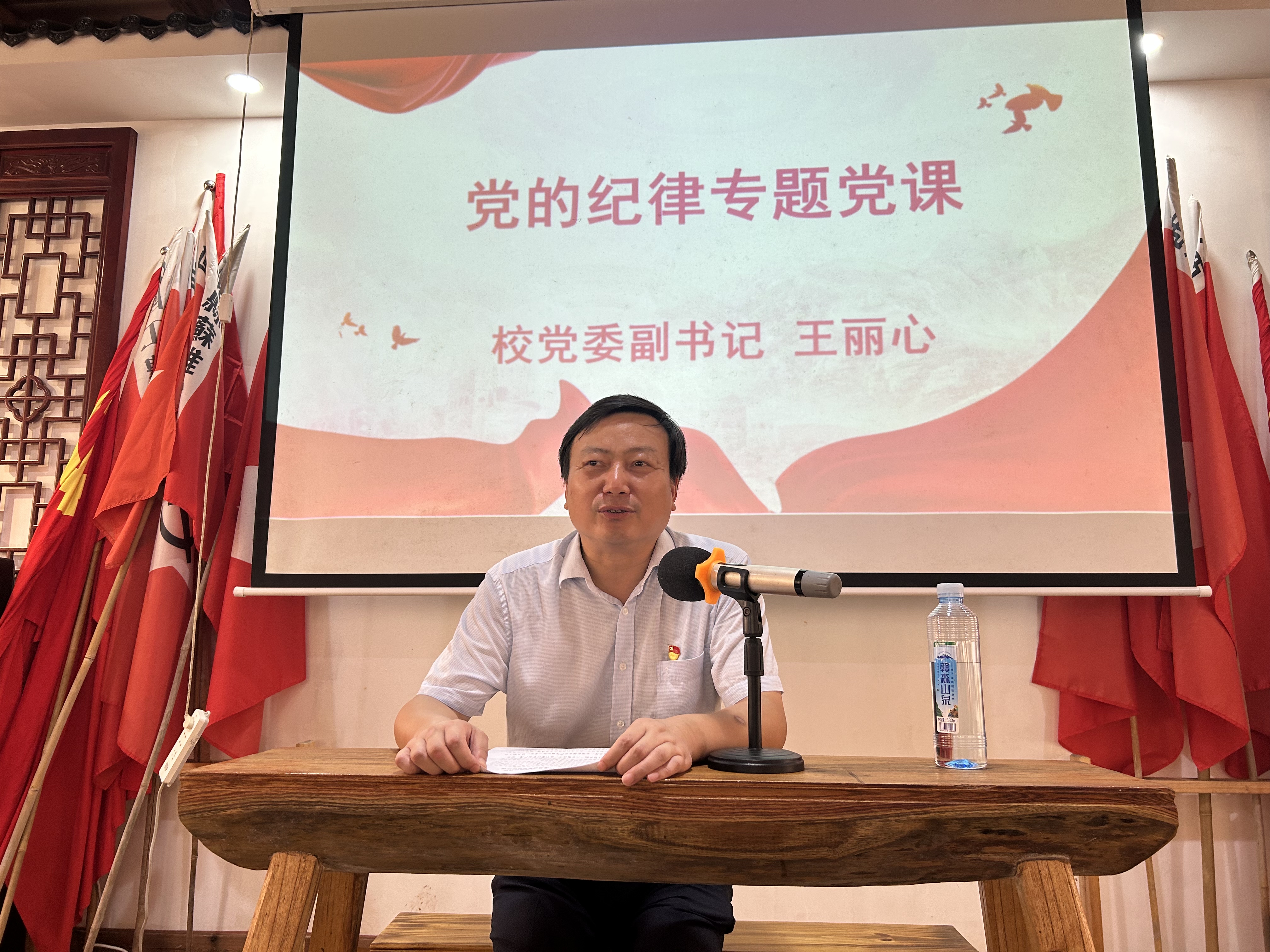 (本网讯:音舞轩)7月22日,音乐舞蹈学院党总支在中共河西县委旧址、革命传统教育基地——浮梁县蛟潭镇琅溪村开展“学党纪、守本色、强担当、促实干”主题党日,重温入党誓词,专题学习党的二十届三中全会精神。校党委副书记王丽心参加主题党日并以“...
