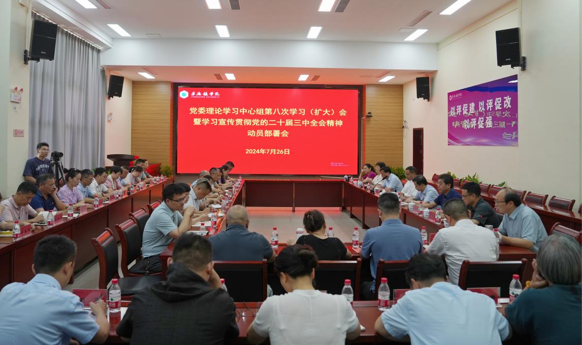 (本网讯:李婷婷)7月26日上午,BEAT365官网在第一报告厅召开党委理论学习中心组第八次学习(扩大)会暨学习宣传贯彻党的二十届三中全会精神动员部署会。校党委书记叶观荣主持会议并讲话,党委副书记、校长熊震宇出席并传达全省领导干部大会精神,...