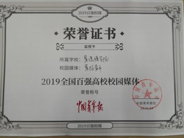 校团委新媒体中心荣获“2019年度全国百强高校媒体”称号