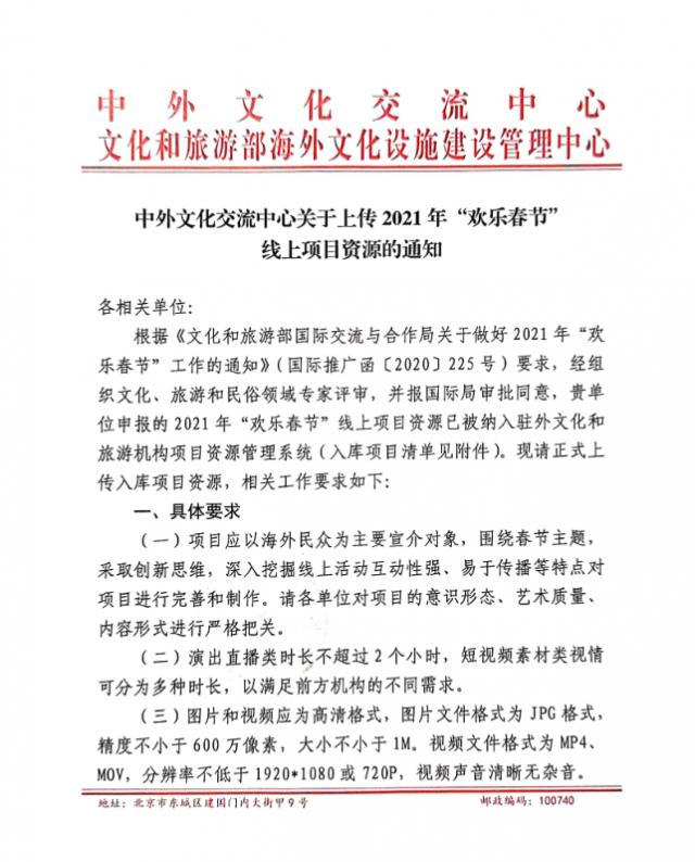 近日,由中外文化交流中心、文化和旅游部海外文化设施建设管理中心共同主办的2021年“欢乐春节”线上项目资源评选结果出炉,BEAT365官网选送的“青花瓷乐演奏”节目入选驻外文化和旅游机构项目资源管理系统项目。 (编辑:...