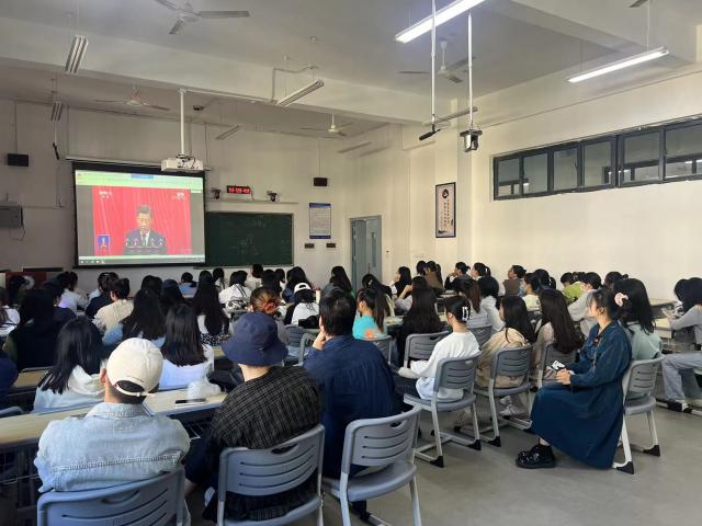 (本网讯:文|刘丽青/图|周灿、冯媛、邓舒馨、肖兰芳)10月16日上午十时,中国共产党第二十次全国代表大会在北京人民大会堂隆重开幕。学校组织全校党员干部教师、全体学生收看了开幕式现场直播。学校在一号报告厅、团学报告厅、各二级学院会议室以及部分教室设立集中收看点,通过多媒体、电脑、手机等多种方式,组织师生集中收看了党的二十大开幕会。校领导叶观荣、陈运平、郑昕芾、李新荣、方漫、朱贺江、万文军与校机关党委全体党员干部在一号报告厅观看了开幕式盛况。
