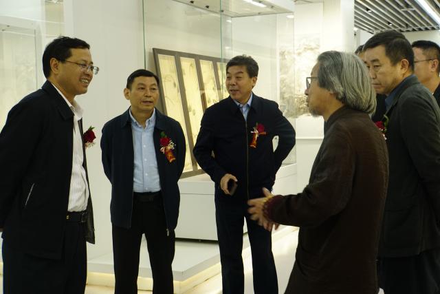 叶观荣、陈运平、吕金泉为“陶瓷美术与设计艺术学院1996届美术教育专业师生优秀艺术作品展”开展仪式剪彩。叶观荣宣布展览开幕。随后,领导、嘉宾及师生代表移步展厅参观。