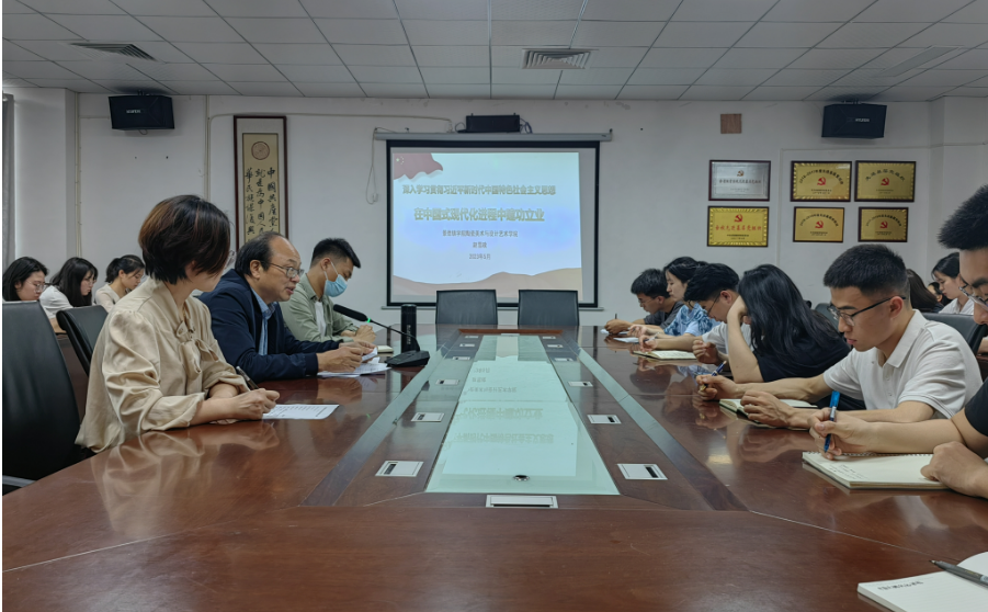 (本网讯:艺苑轩)为深入开展学习贯彻习近平新时代中国特色社会主义思想主题教育,进一步加强学习宣传贯彻党的二十大精神,加强学生党员的政治学习,提升理论修养。5月4日下午,陶瓷美术与设计艺术学院学生党支部召开主题教育专题学习会,党委书记赵雪政与大家共同学习了“习近平总书记给中国农业大学科技小院的学生回信”、人民日报5月3日刊发的文章《总书记的“青年观”》,并以“学习贯彻习近平新时代中国特色社会主义思想,在中国式现代化进程中建功立业”为题,给学生党员讲授主题教育专题党课。